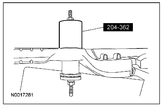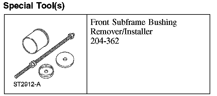 1. Assemble the special tools to the front subframe with the new subframe bushing.