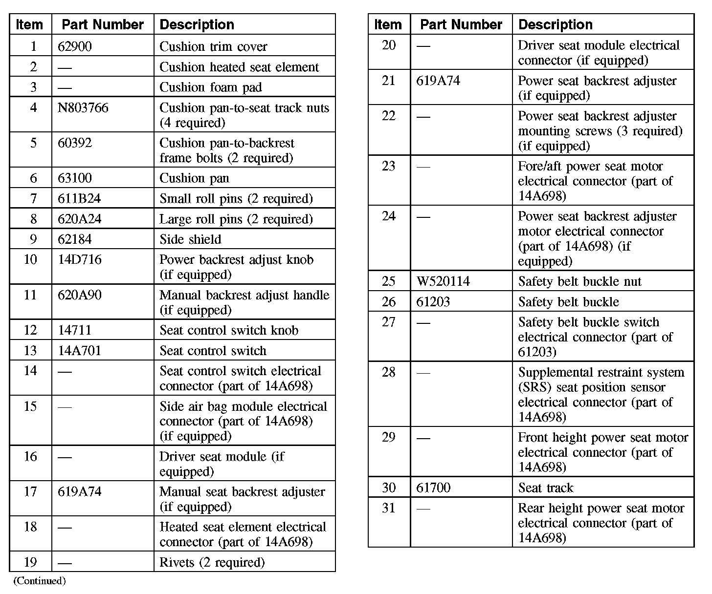 - If a seat equipped with a supplemental restraint system (SRS) component is being serviced, the SRS must be depowered.