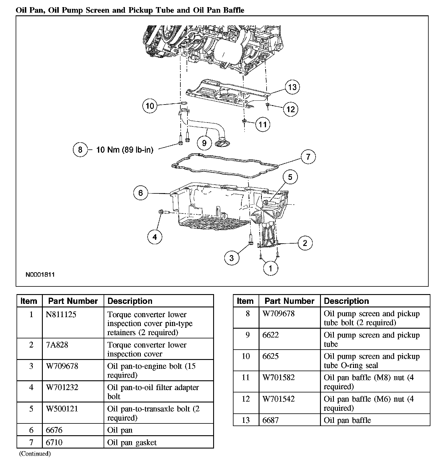 Oil Pan, Oil Pump Screen and Pickup Tube and Oil Pan Baffle: