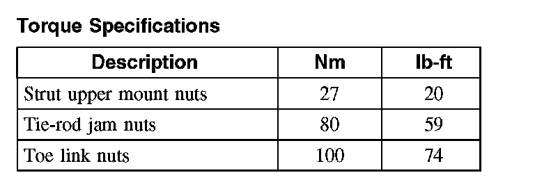 Torque Specifications:
