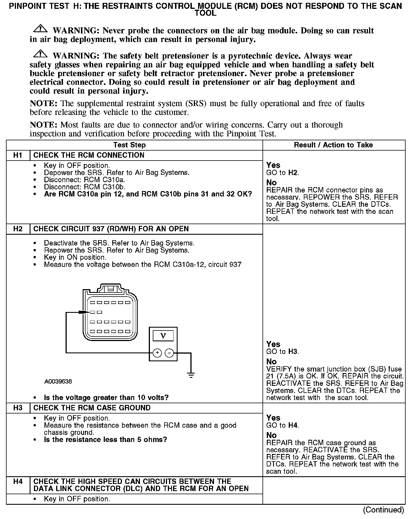 PINPOINT TEST H: THE RESTRAINTS CONTROL MODULE (RCM) DOES NOT RESPOND TO THE SCAN TOOLH1-H4: