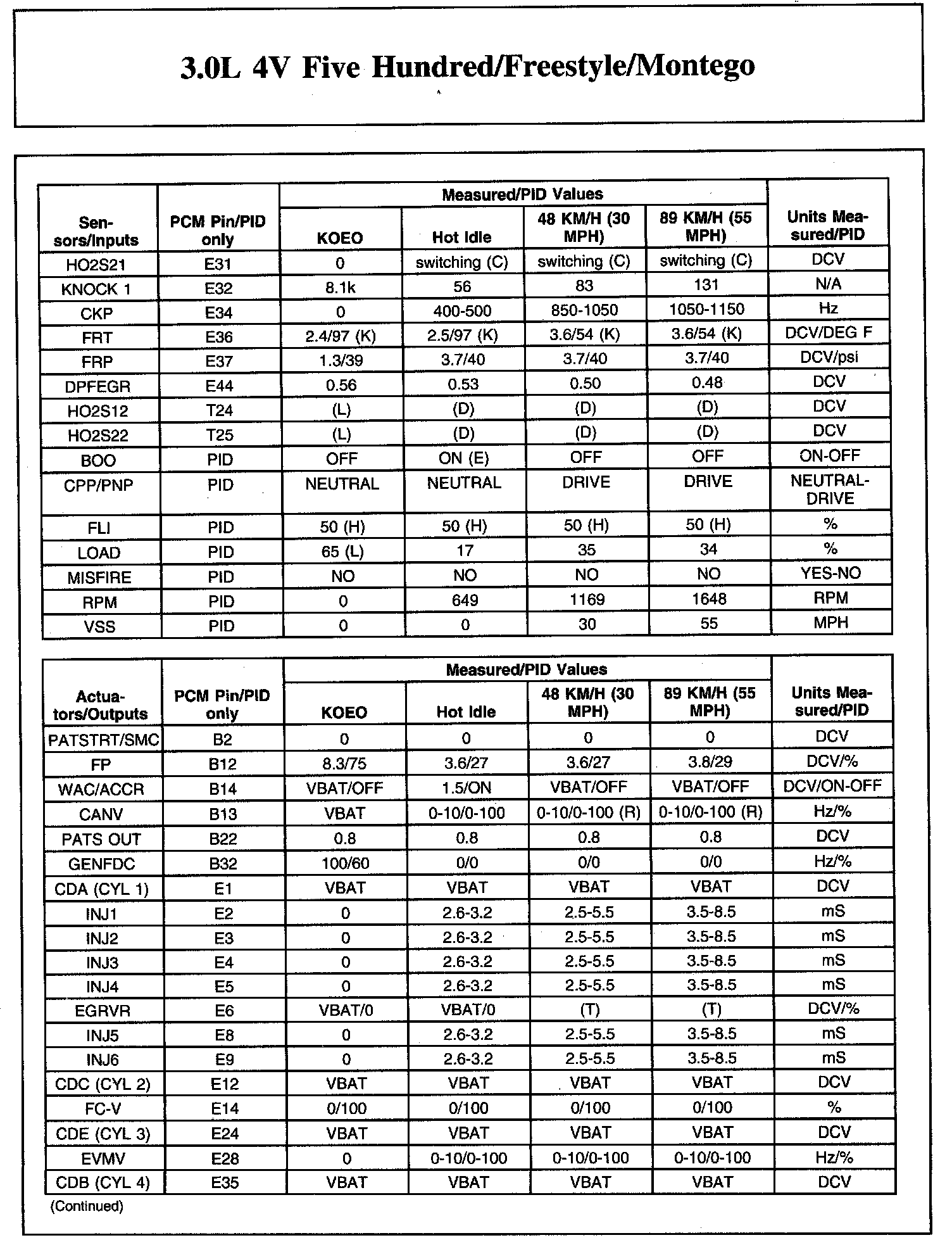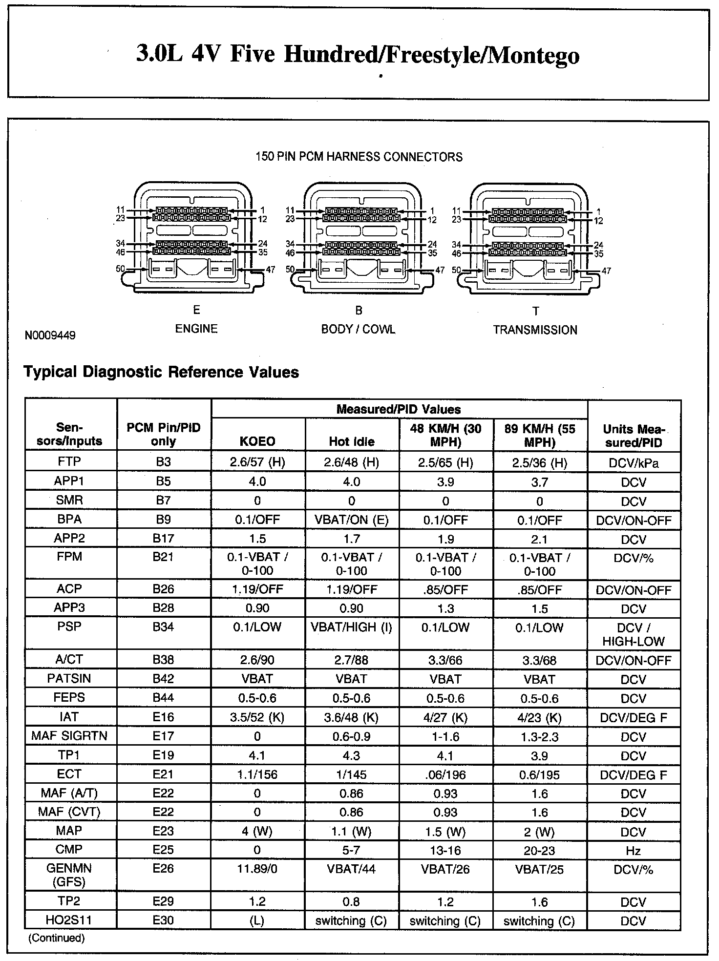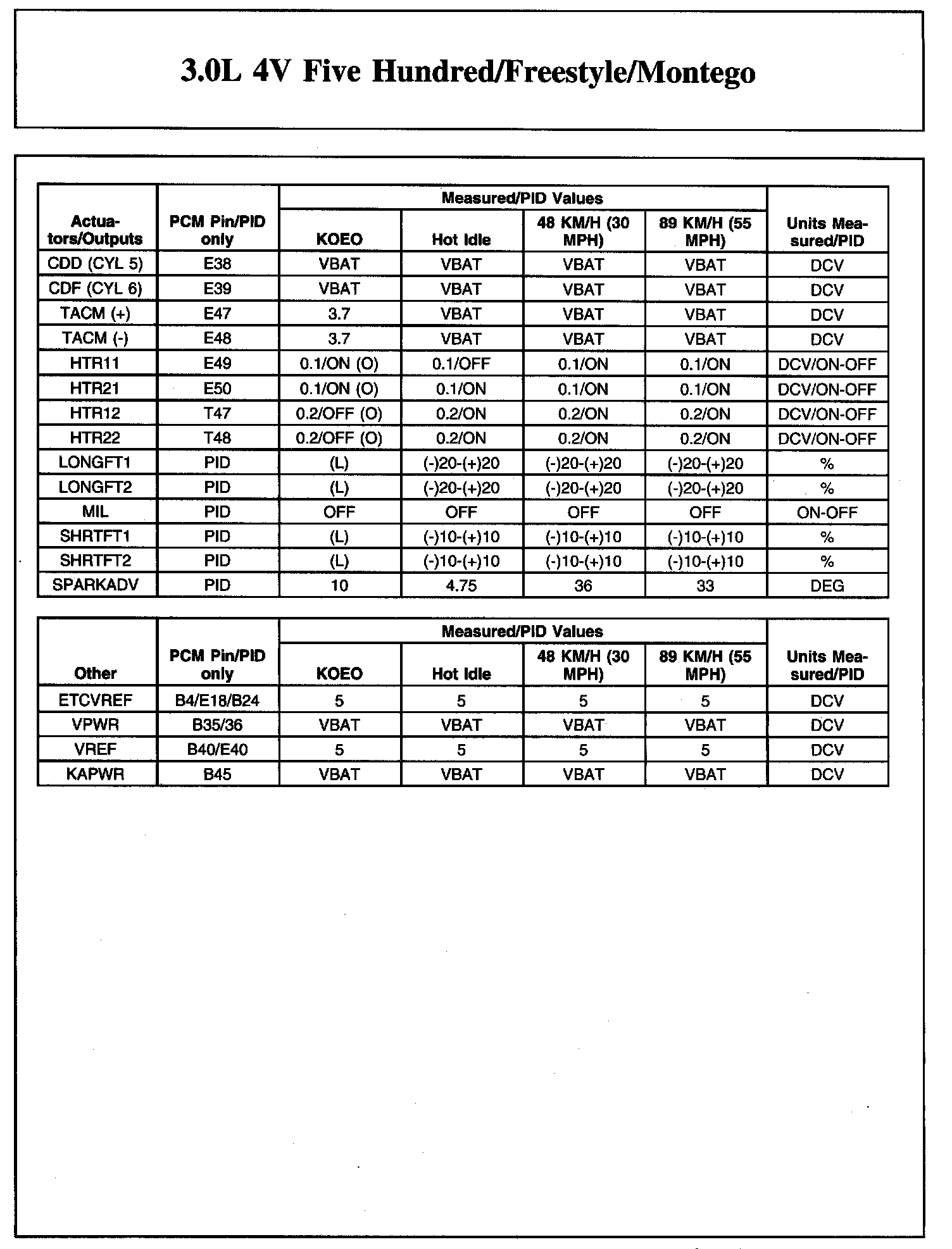 Home >> Ford >> 2007 >> Freestyle AWD V6-3.0L VIN 1 >> Repair and Diagnosis >> Powertrain Management >> Computers and Control Systems >> Testing and Inspection >> Scan Tool Testing and Procedures >> Typical Diagnostic Reference Values