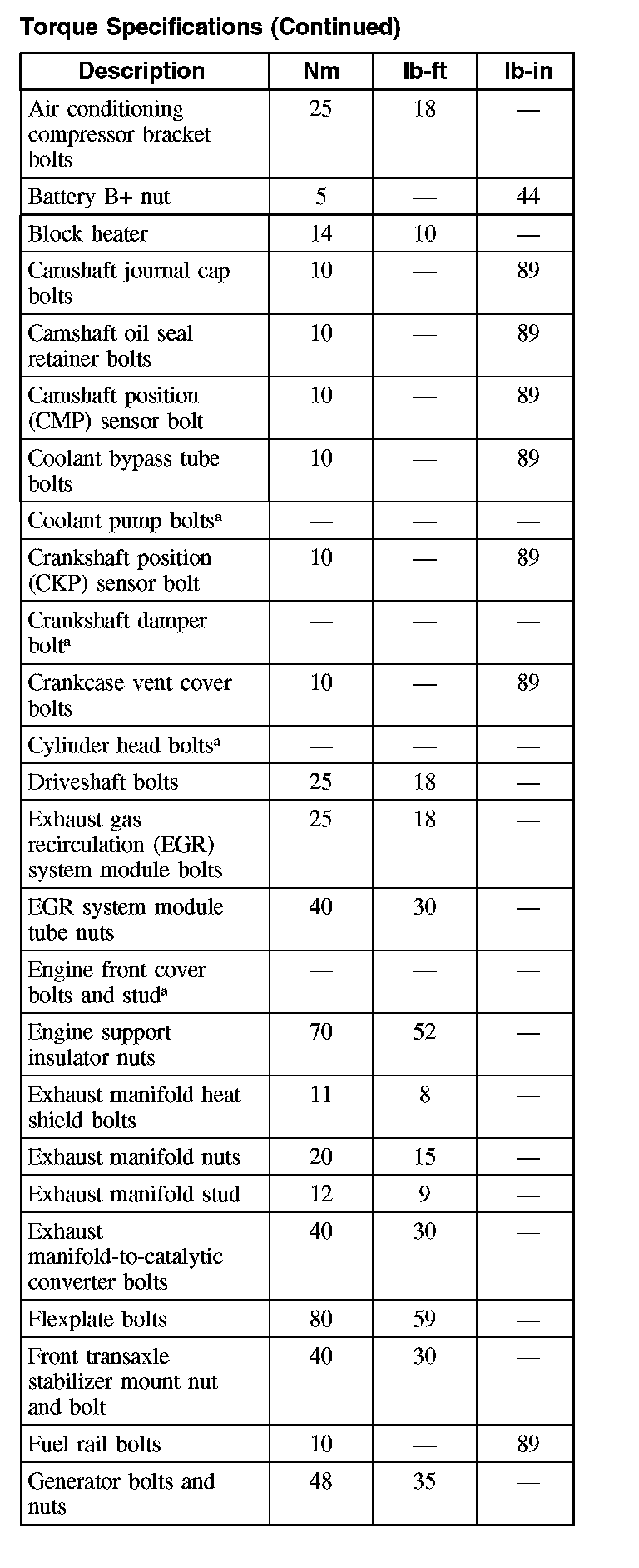 Torque Specifications