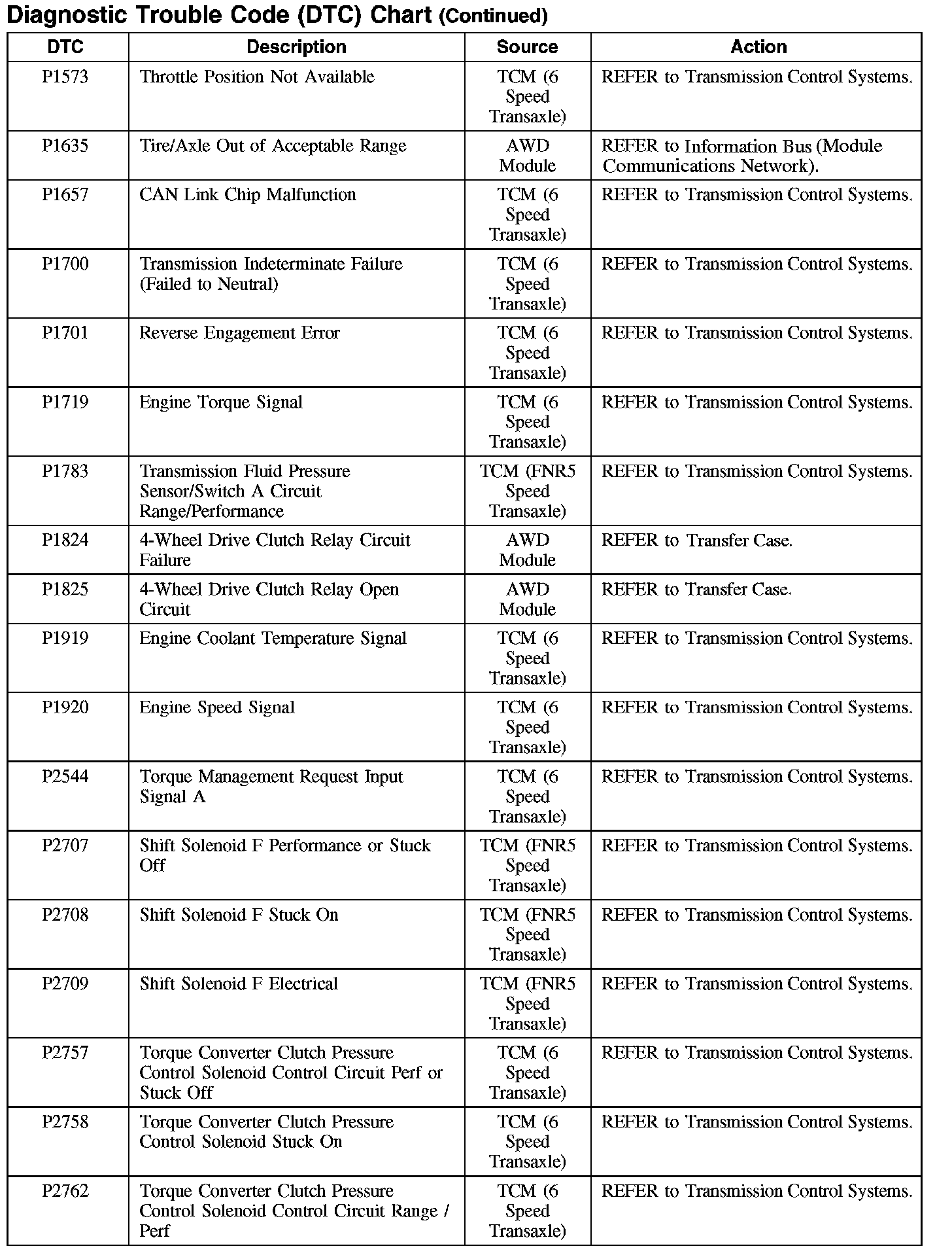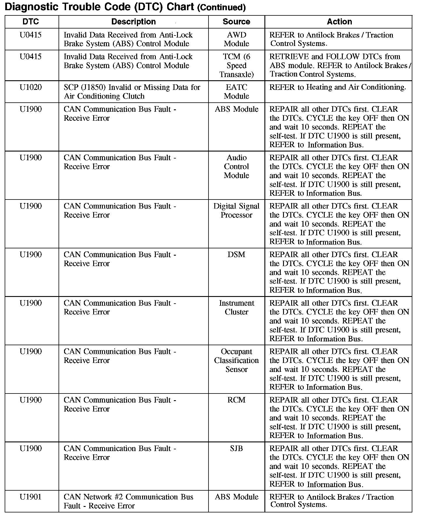 DIAGNOSTIC TROUBLE CODE (DTC) CHART