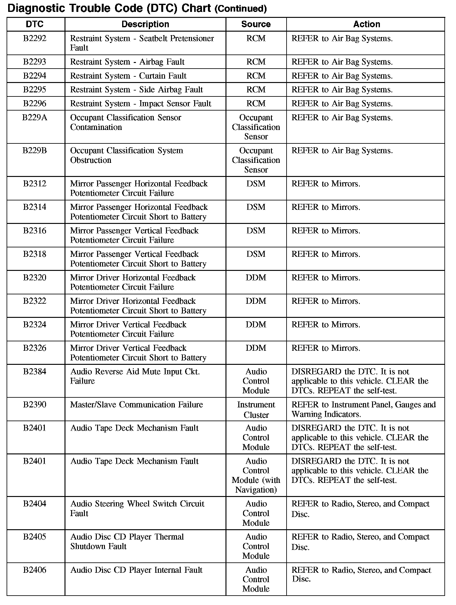 Home >> Ford >> 2007 >> Fusion FWD L4-2.3L VIN Z >> Repair and Diagnosis >> Body and Frame >> Body Control Systems >> Testing and Inspection >> Diagnostic Trouble Code Descriptions