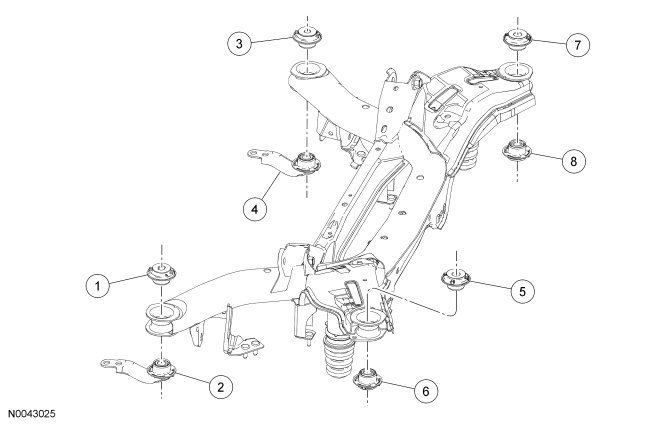 9. Install the rear subframe. For additional information, refer to Subframe - Rear Subframe - Rear.