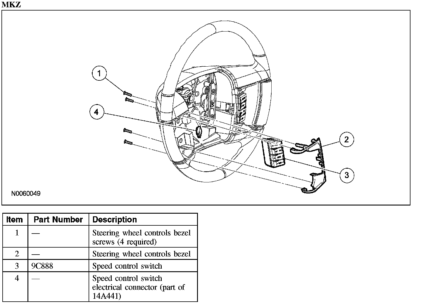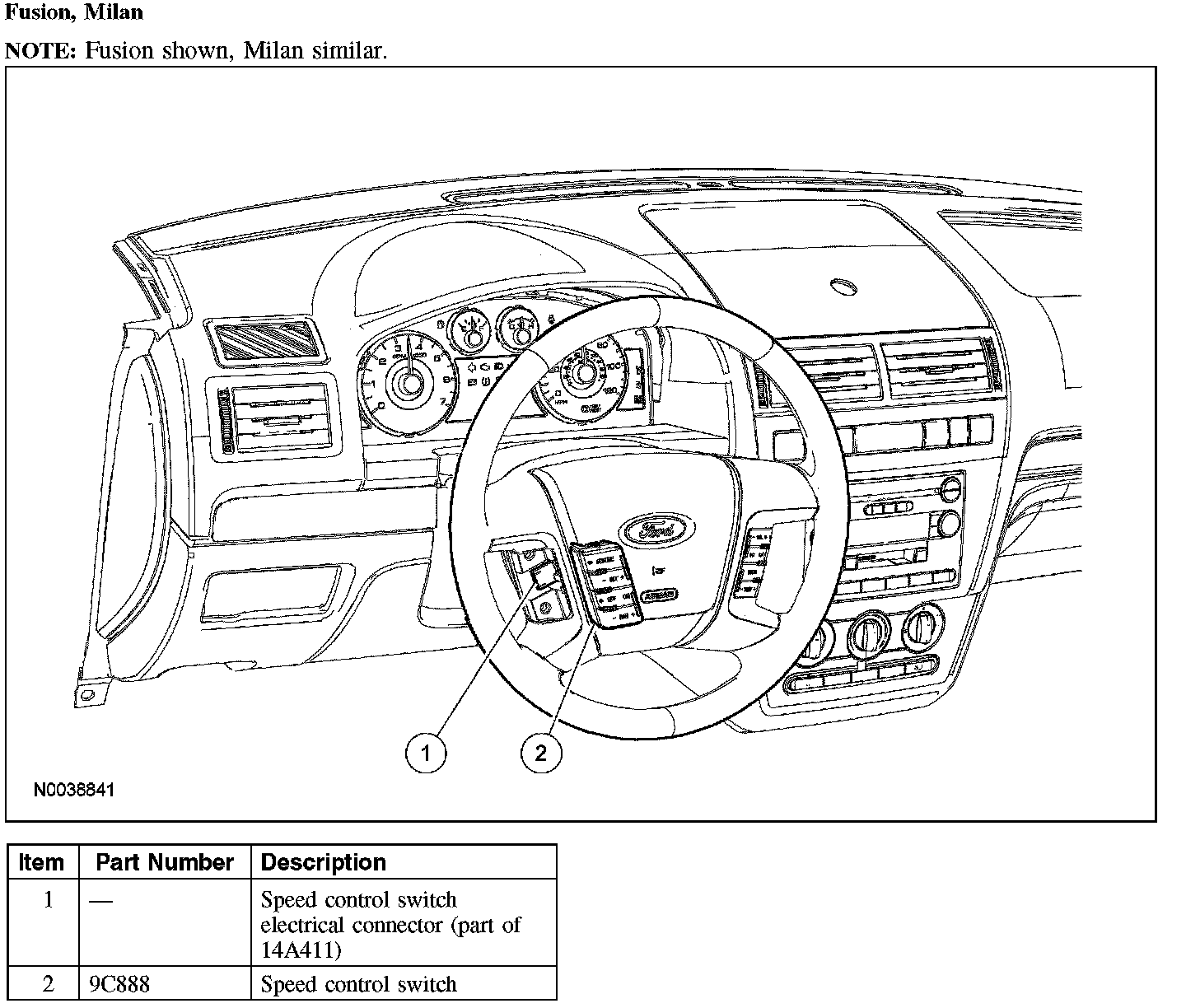 3. Remove the speed control switch by pulling the switch toward the rear of the vehicle.