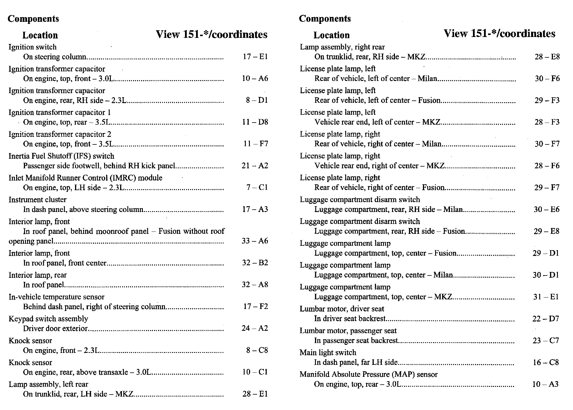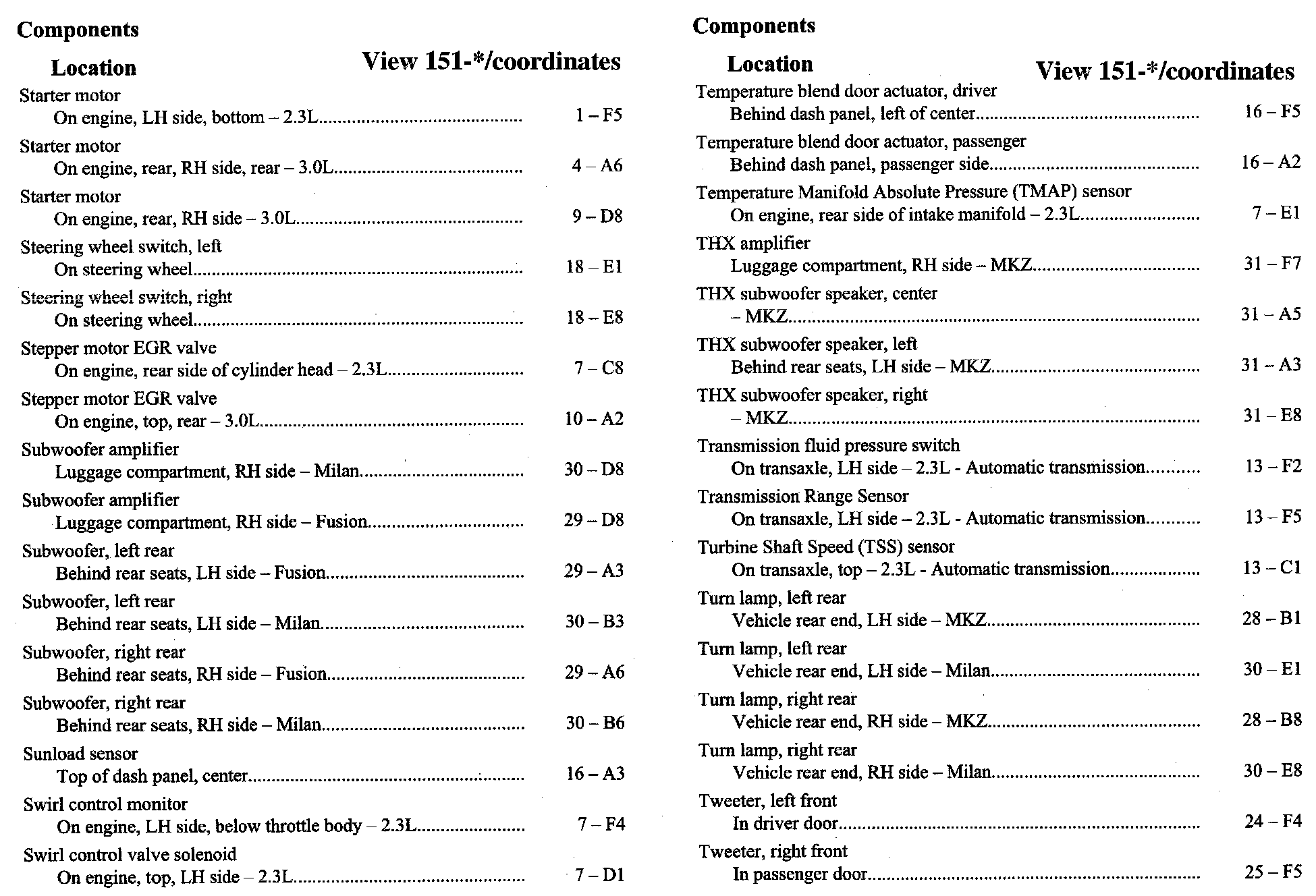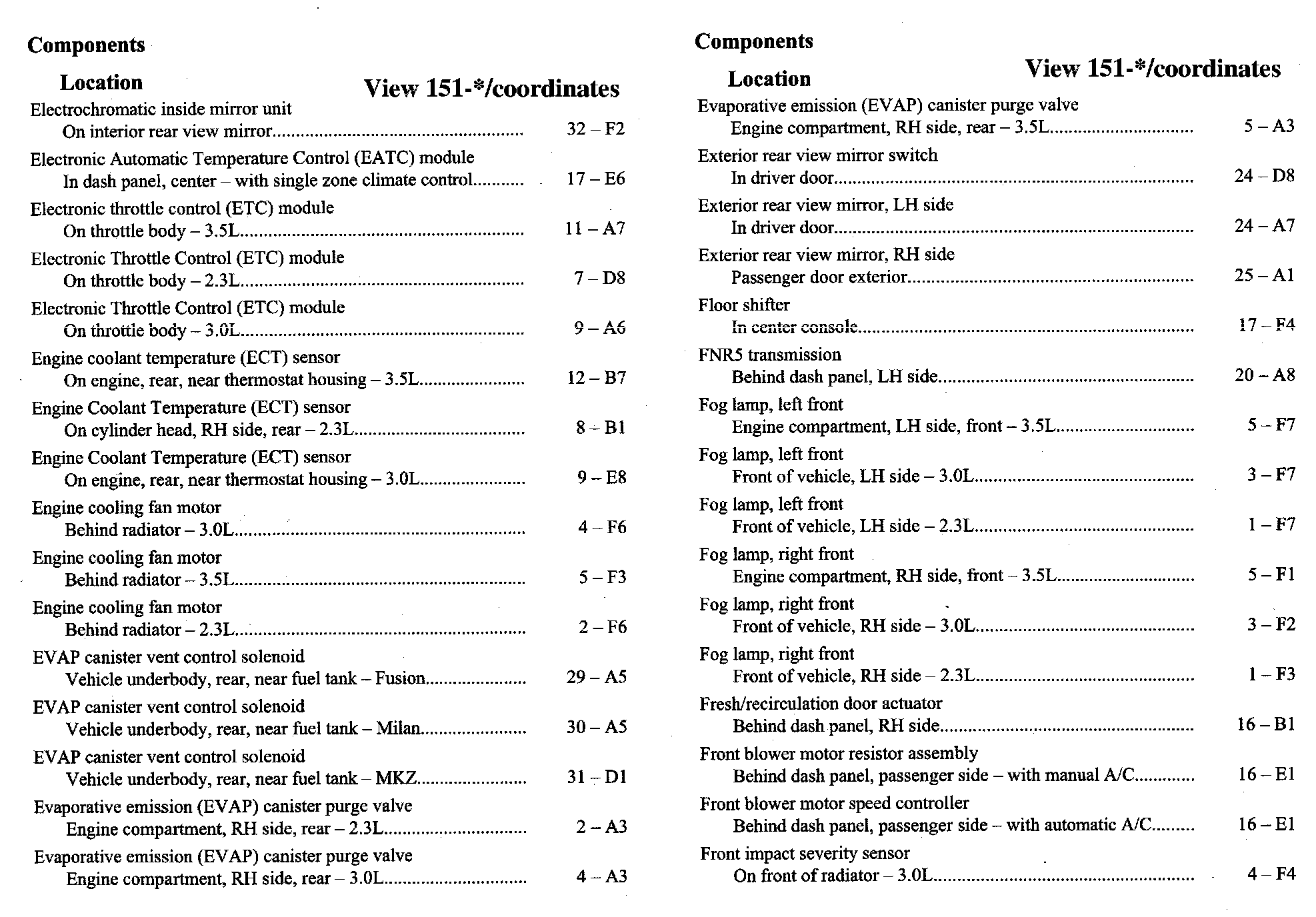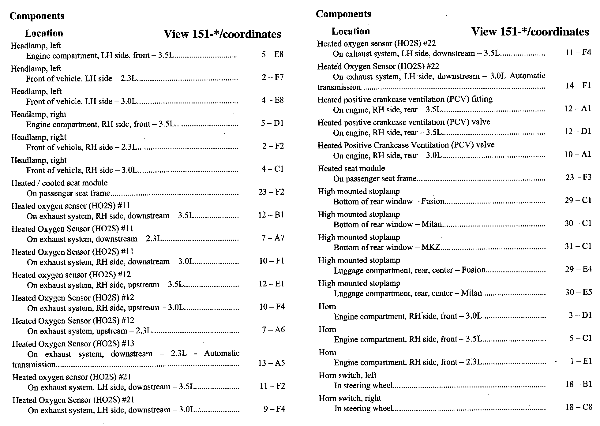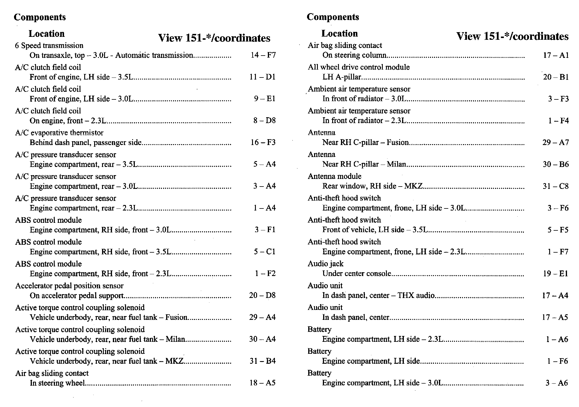 Home >> Ford >> 2007 >> Fusion FWD L4-2.3L VIN Z >> Repair and Diagnosis >> Diagrams >> Components >> Component Location Index