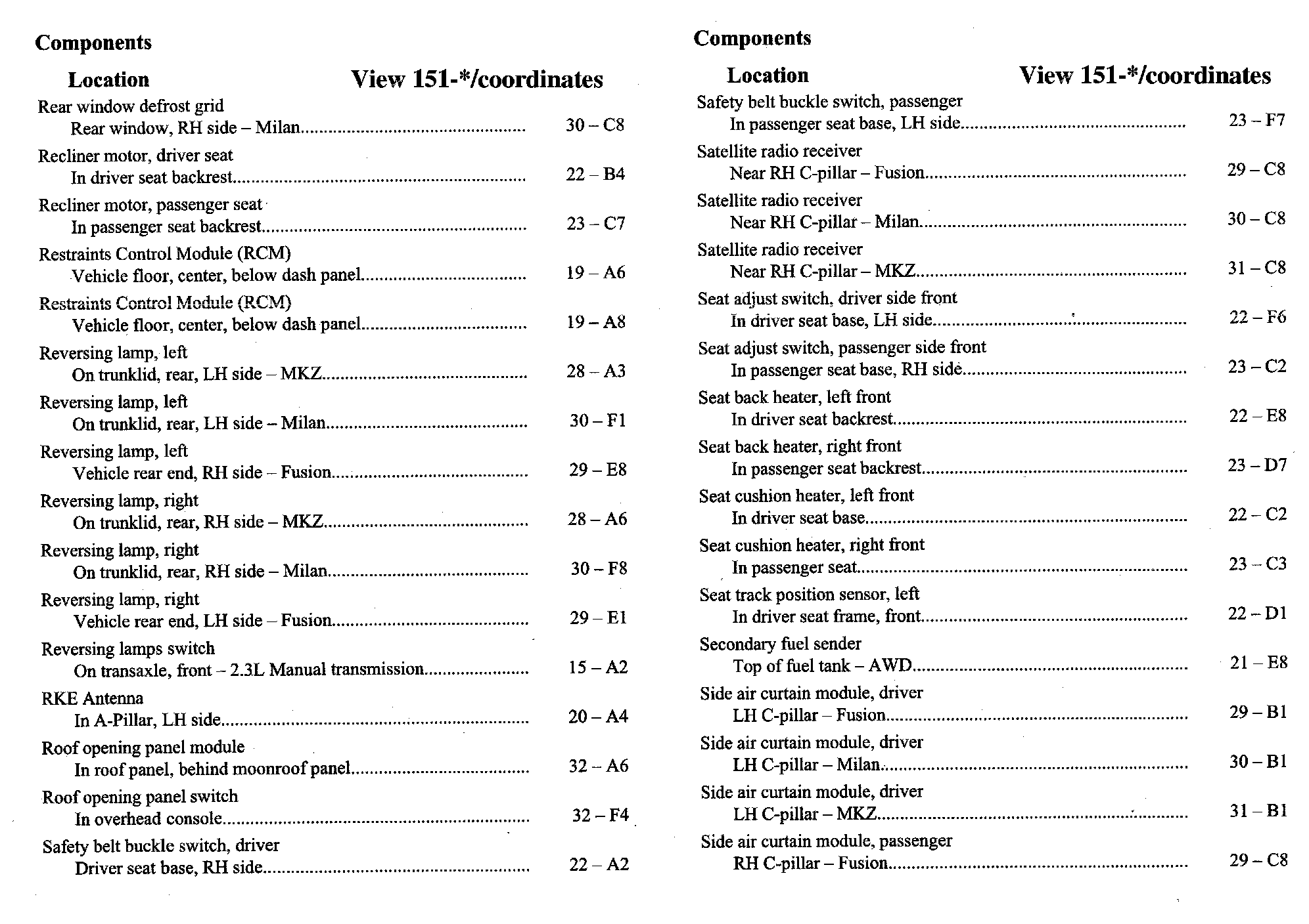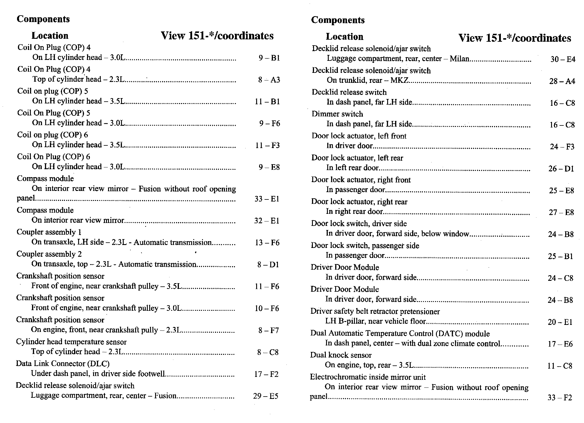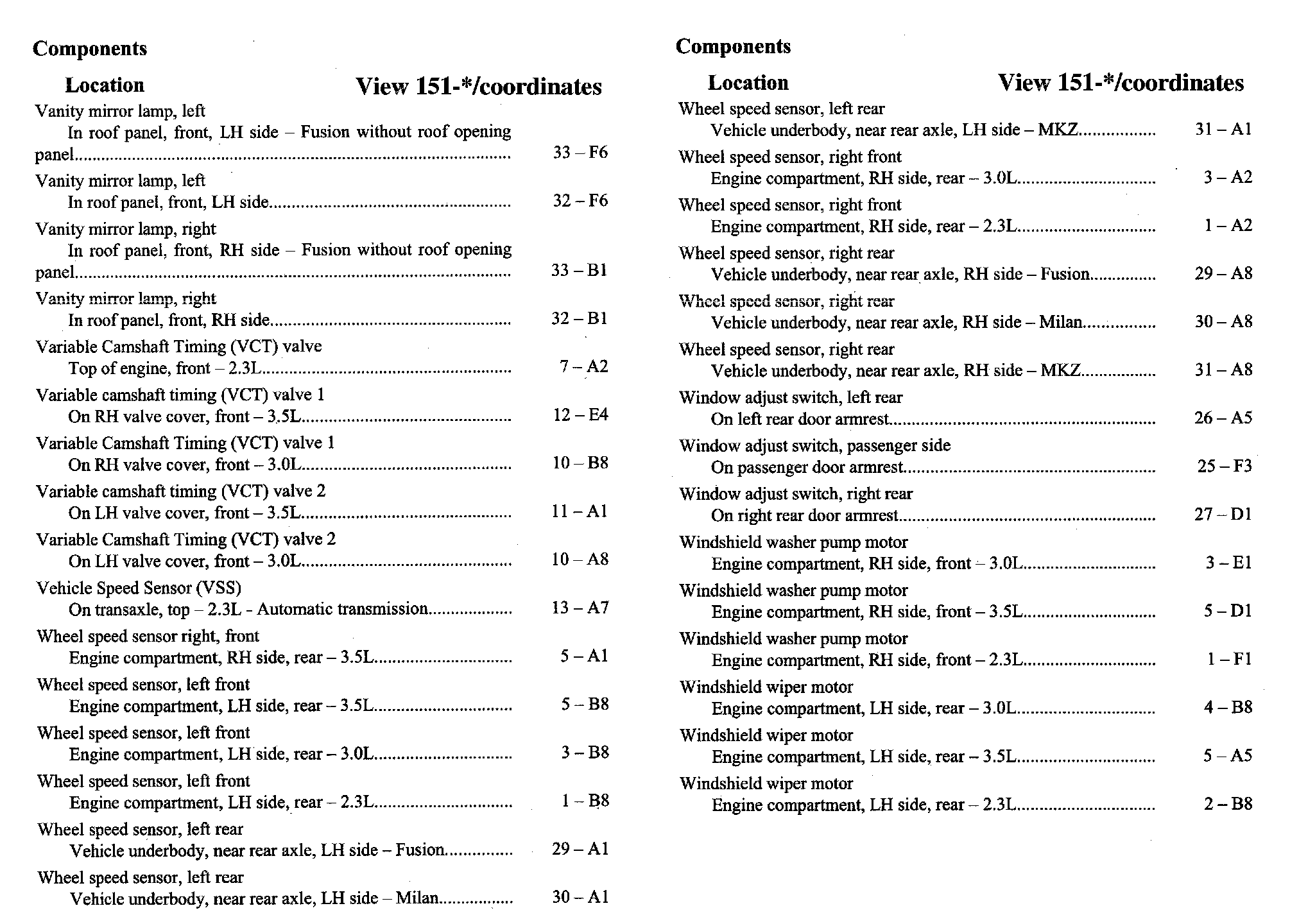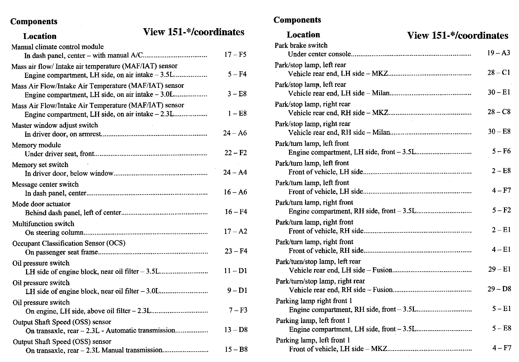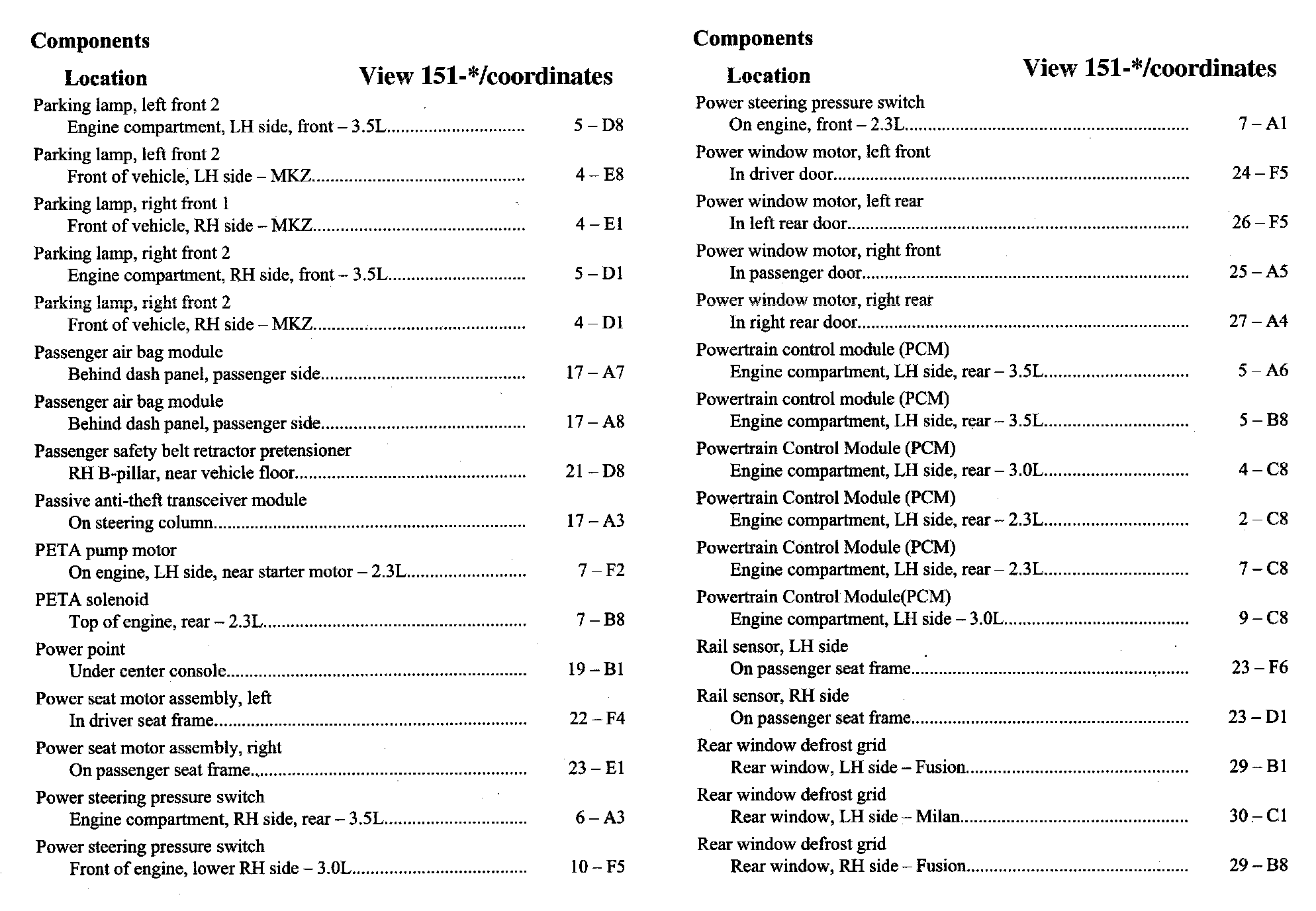 Home >> Ford >> 2007 >> Fusion FWD L4-2.3L VIN Z >> Repair and Diagnosis >> Diagrams >> Components >> Component Location Index