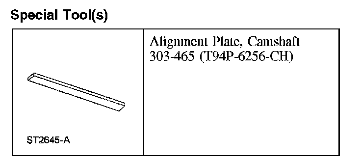 8. CAUTION: The special tool 303-465 is for camshaft alignment only. Using this tool to prevent engine rotation can result in engine damage.