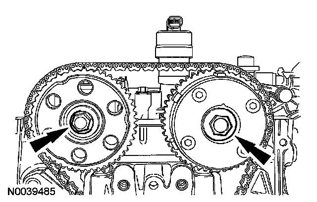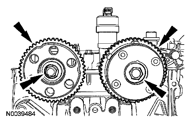 1. Install the camshaft sprockets and the bolts. Do not tighten the bolts at this time.