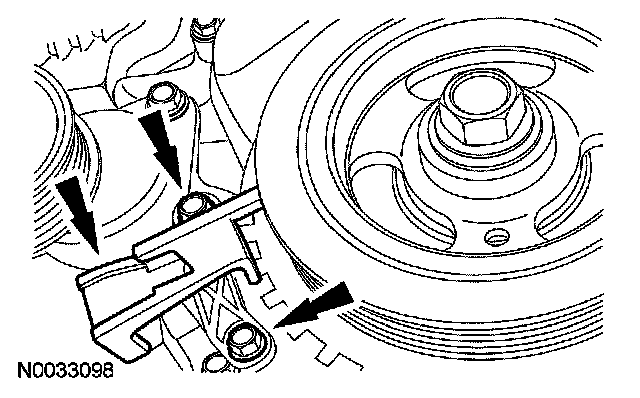 Install a 6 mm (0.23 in) x 18 mm (0.7 in) standard bolt in the crankshaft pulley.