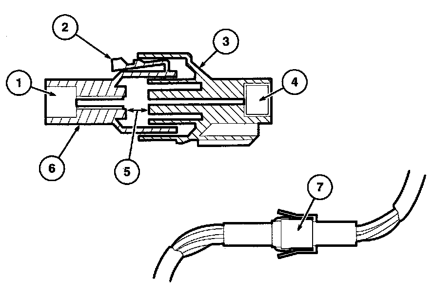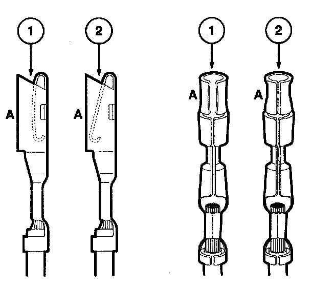 Any probe entering the terminal may enlarge the contact spring opening creating an intermittent signal. Insert the correct mating terminal (Location A) from the service kit and feel for a loose fit.