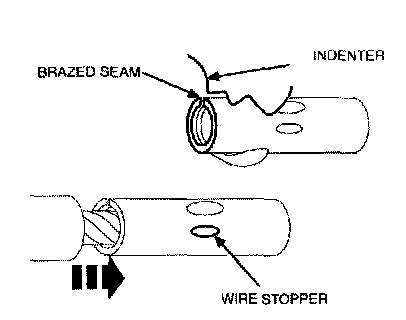 6. Center one end of the wire splice in the appropriate crimping chamber.
