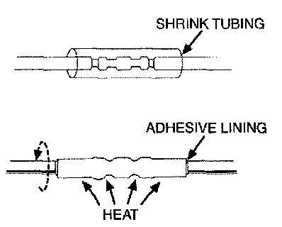 12. Use shielded heat gun to heat the repaired area until adhesive flows out of both ends of the heat shrink tubing.