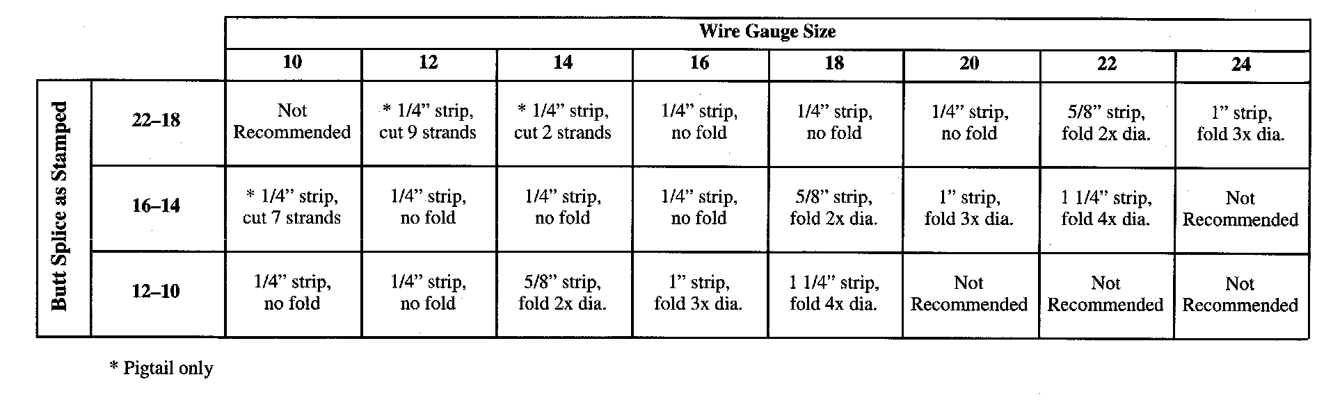 Recommended splicing method - Crimp (For 10-22 AWG Diameter Wire to Like Wire Diameter)