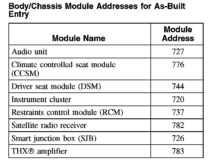 As-Built data is a VIN specific module configuration record. During vehicle build, the configuration from all modules is downloaded and stored in the As-Built database. As Built data will not reflect customer preference items that have been changed from the default state. These items will need to be changed using programmable parameters after the module is configured.
