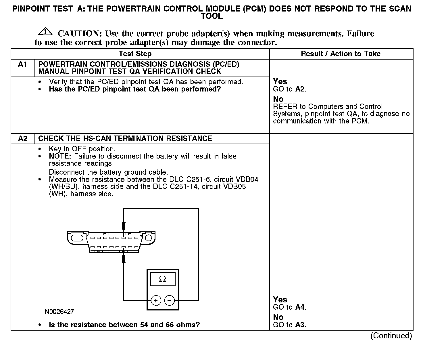 Home >> Ford >> 2007 >> Fusion FWD L4-2.3L VIN Z >> Repair and Diagnosis >> Powertrain Management >> Computers and Control Systems >> Information Bus >> Testing and Inspection >> Pinpoint Tests >> Test A: The Powertrain Control Module (PCM) Does Not Respond To The Scan Tool