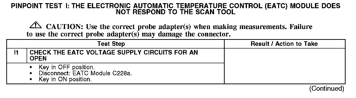 PINPOINT TEST I: THE ELECTRONIC AUTOMATIC TEMPERATURE CONTROL (EATC) MODULE DOES NOT RESPOND TO THE SCAN TOOLI1: