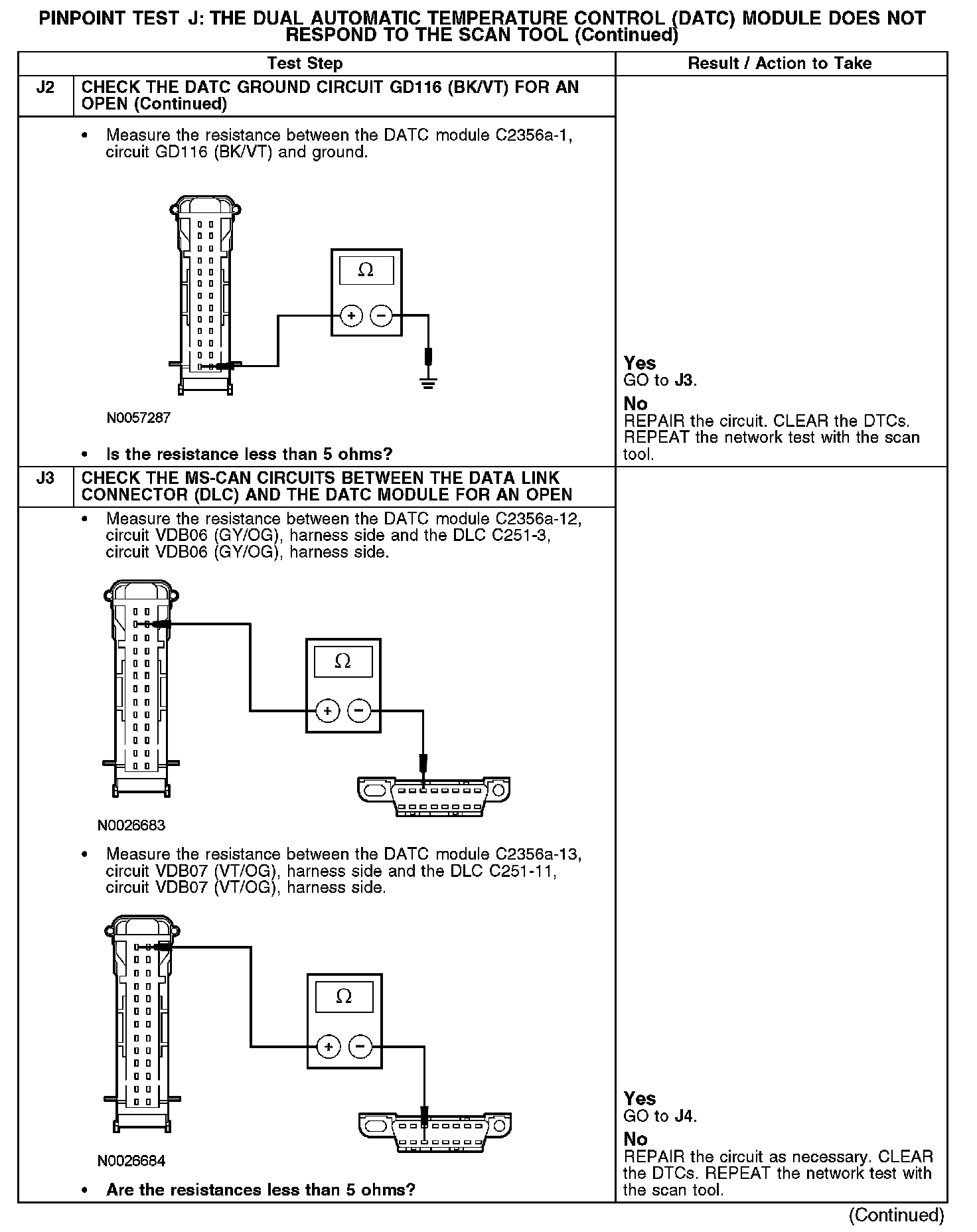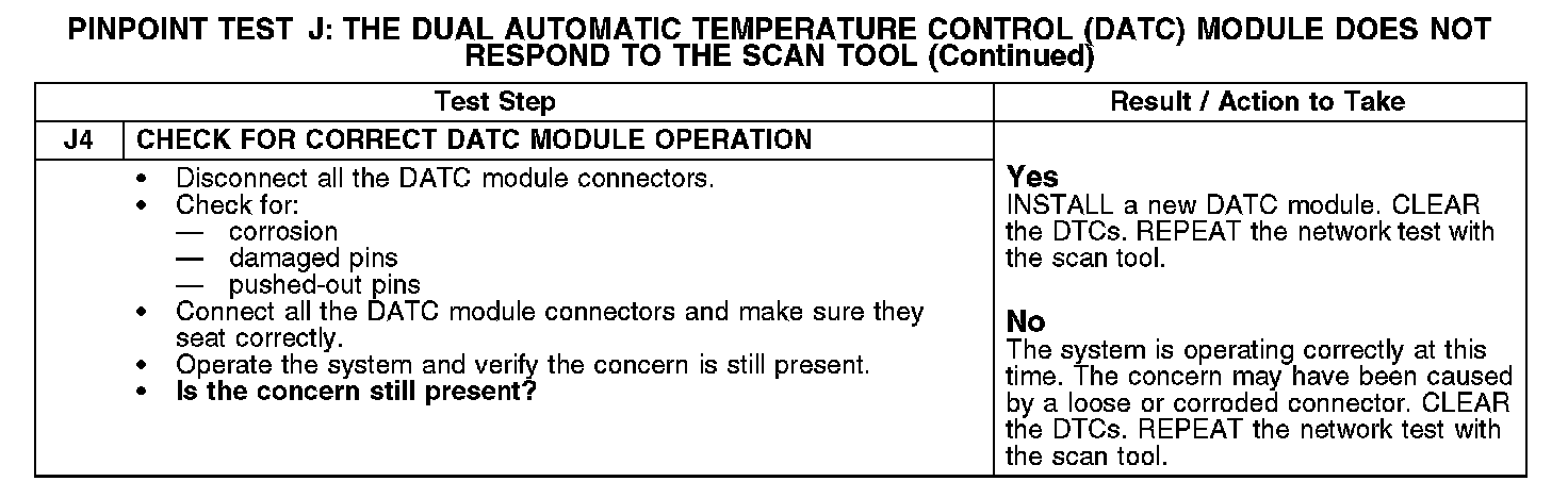 PINPOINT TEST J: THE DUAL AUTOMATIC TEMPERATURE CONTROL (DATC) MODULE DOES NOT RESPOND TO THE SCAN TOOLJ1-J2: