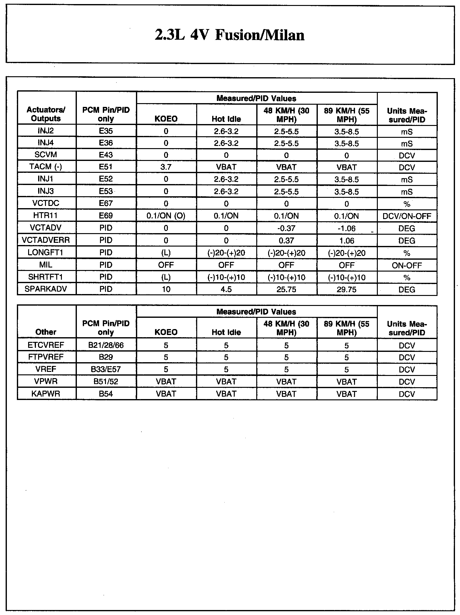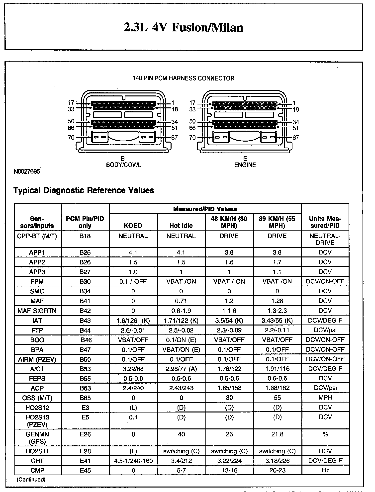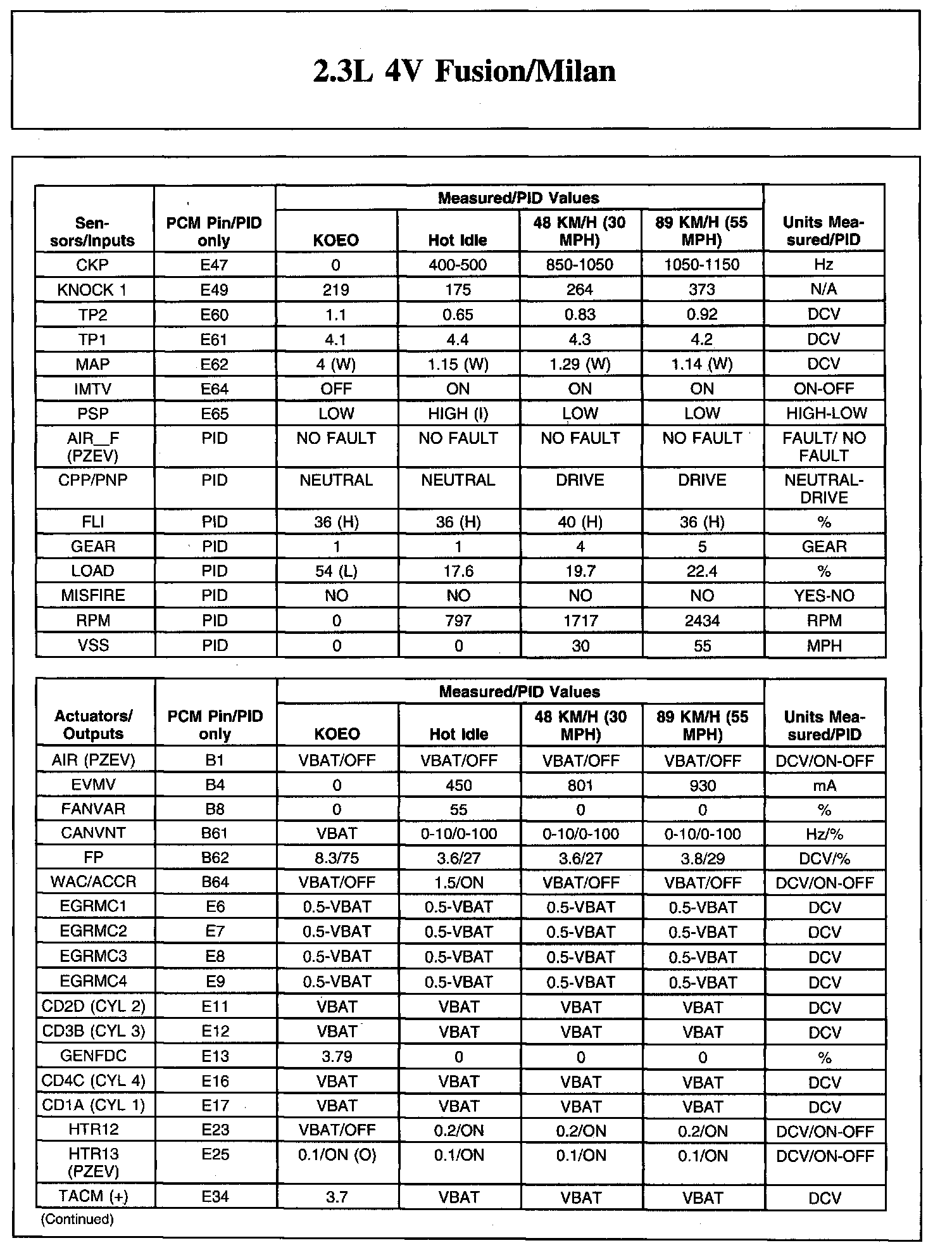 Home >> Ford >> 2007 >> Fusion FWD L4-2.3L VIN Z >> Repair and Diagnosis >> Powertrain Management >> Computers and Control Systems >> Testing and Inspection >> Scan Tool Testing and Procedures >> Typical Diagnostic Reference Values