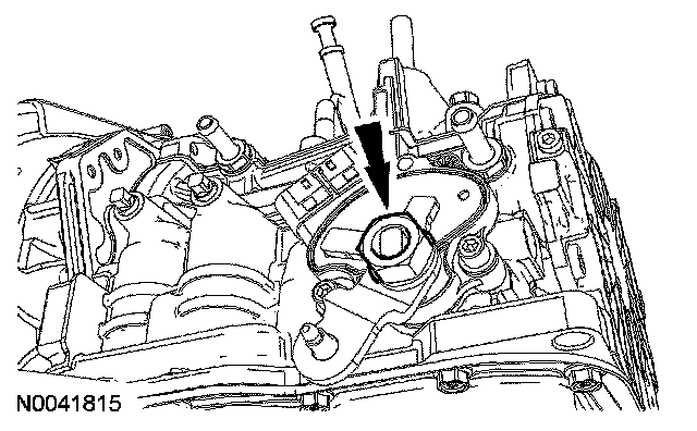 3. CAUTION: Do not use air tools on this nut. Hold the manual control lever, while tightening the manual control lever nut, failure to the manual control lever shaft or the TR sensor could occur.