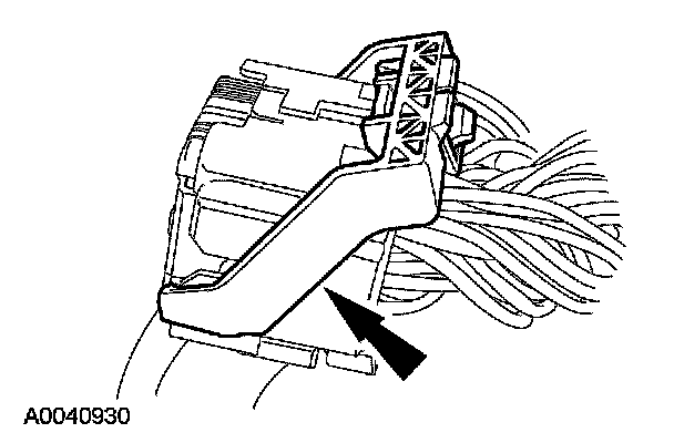 - Using the connector position assurance lever, pivot it toward the RCM, drawing the connector into the RCM.