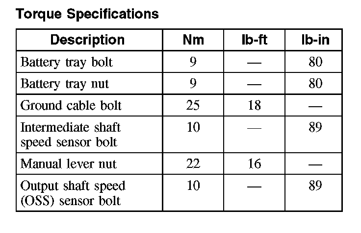 Torque Specifications: