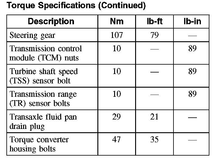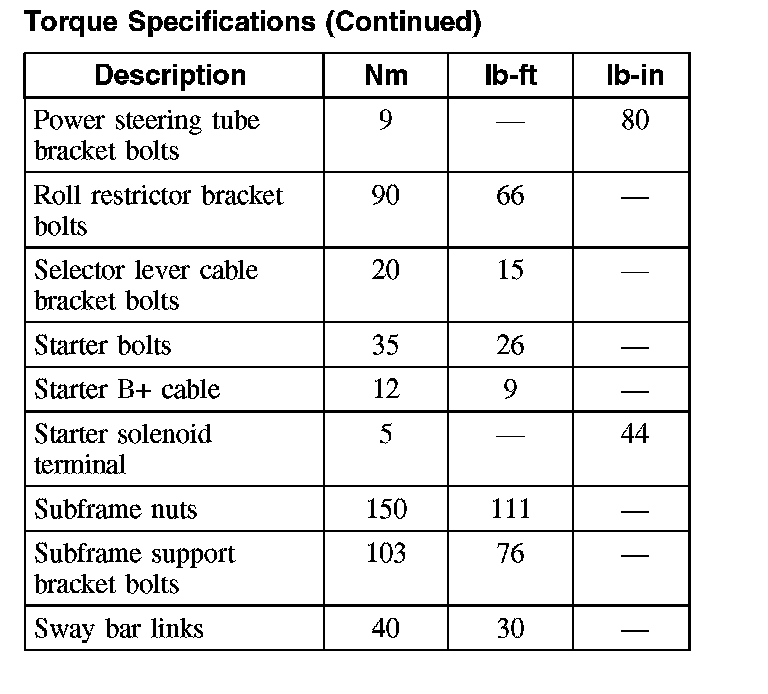 Torque Specifications (Continued):