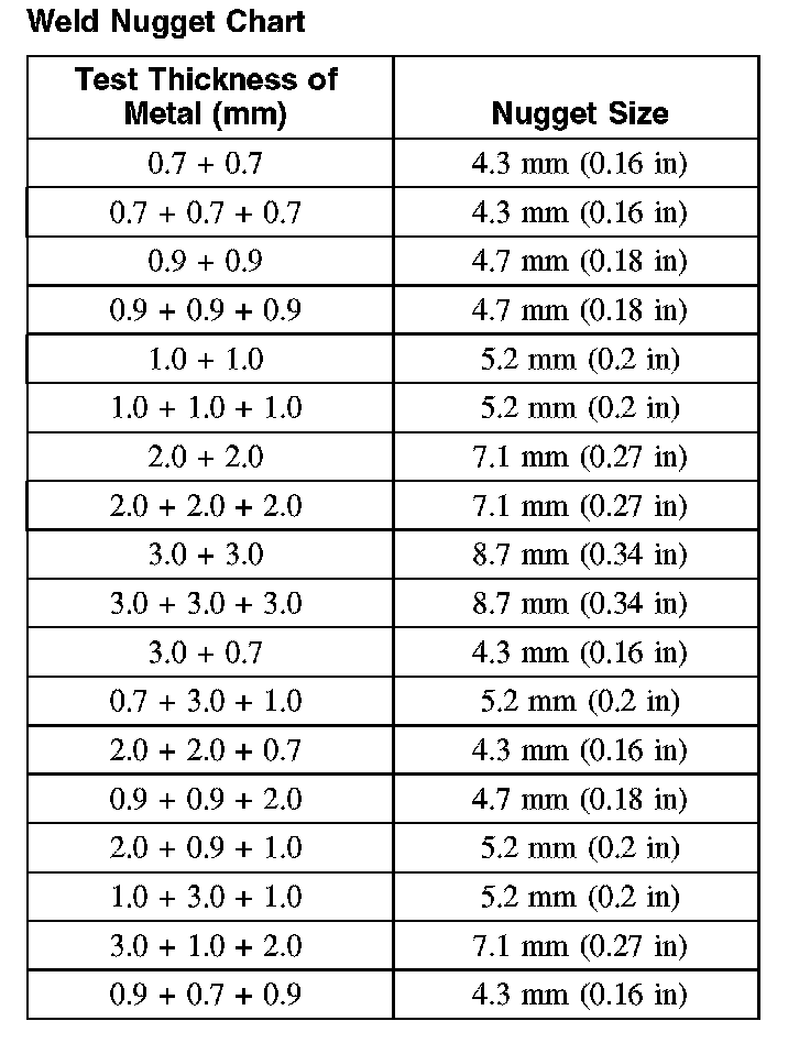 Weld Nugget Chart: