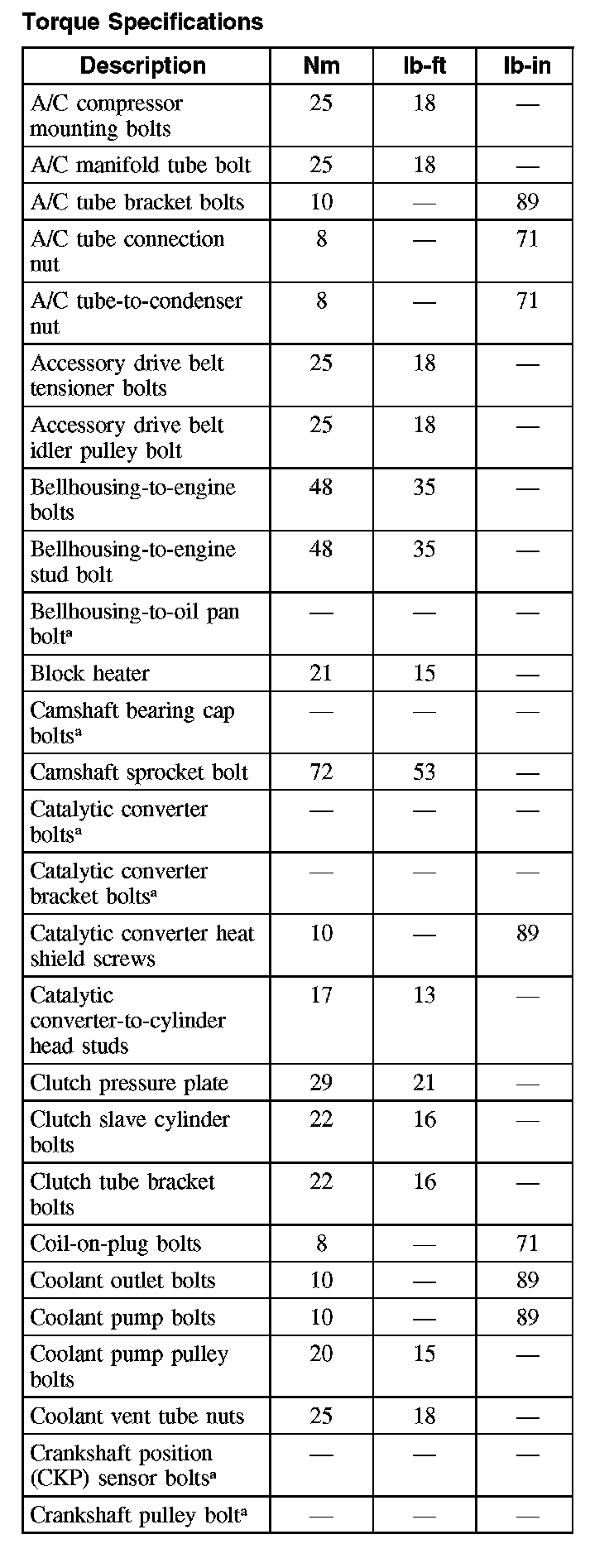Torque SpecificationsTorque Specifications: