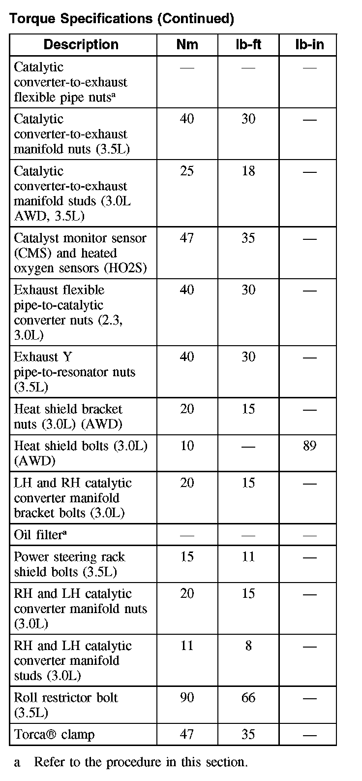 Torque Specifications: