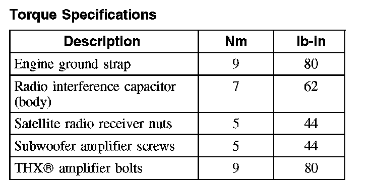 Torque Specifications: