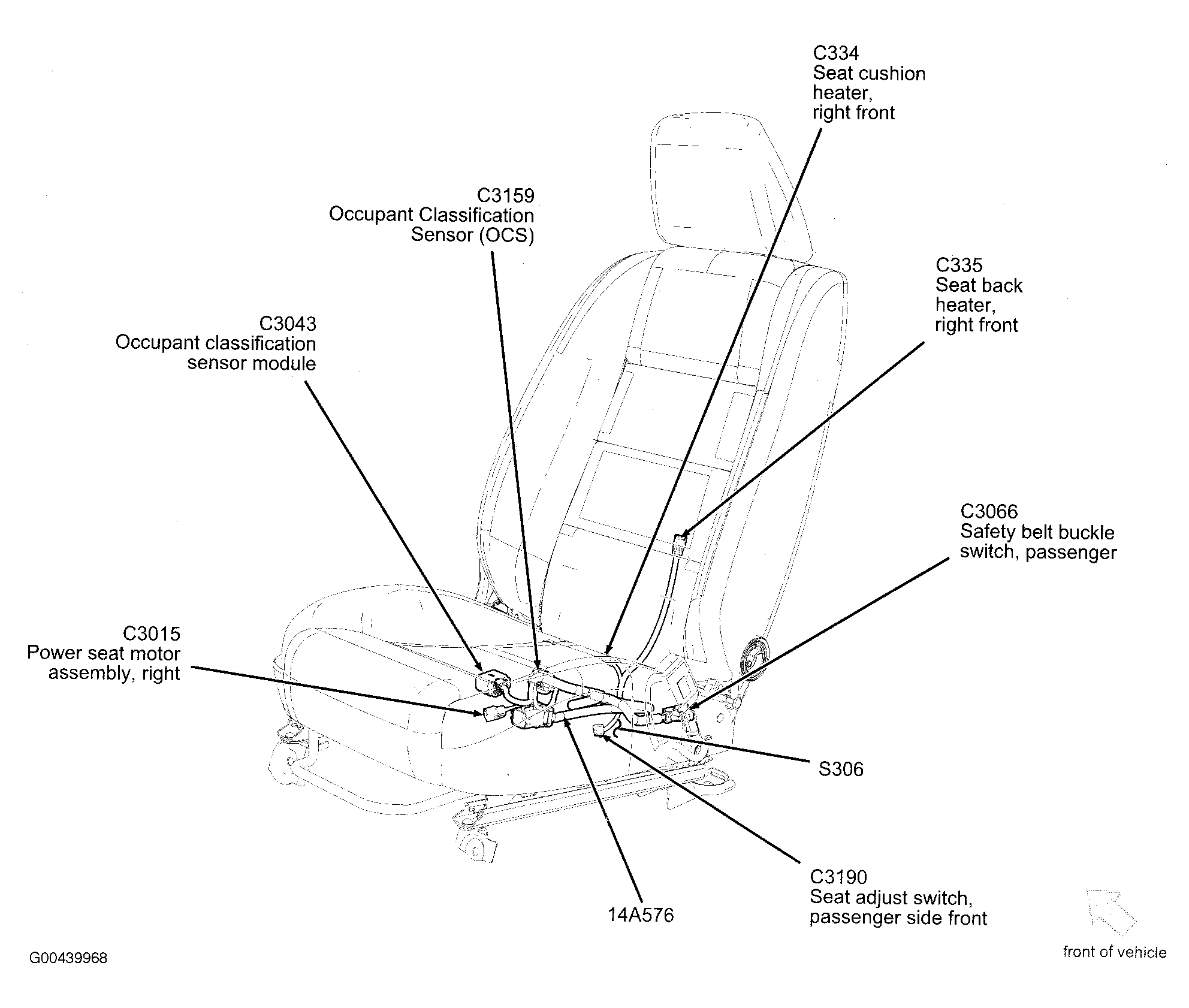 Occupant Classification Sensor Module Under passenger's seat. See Figure.