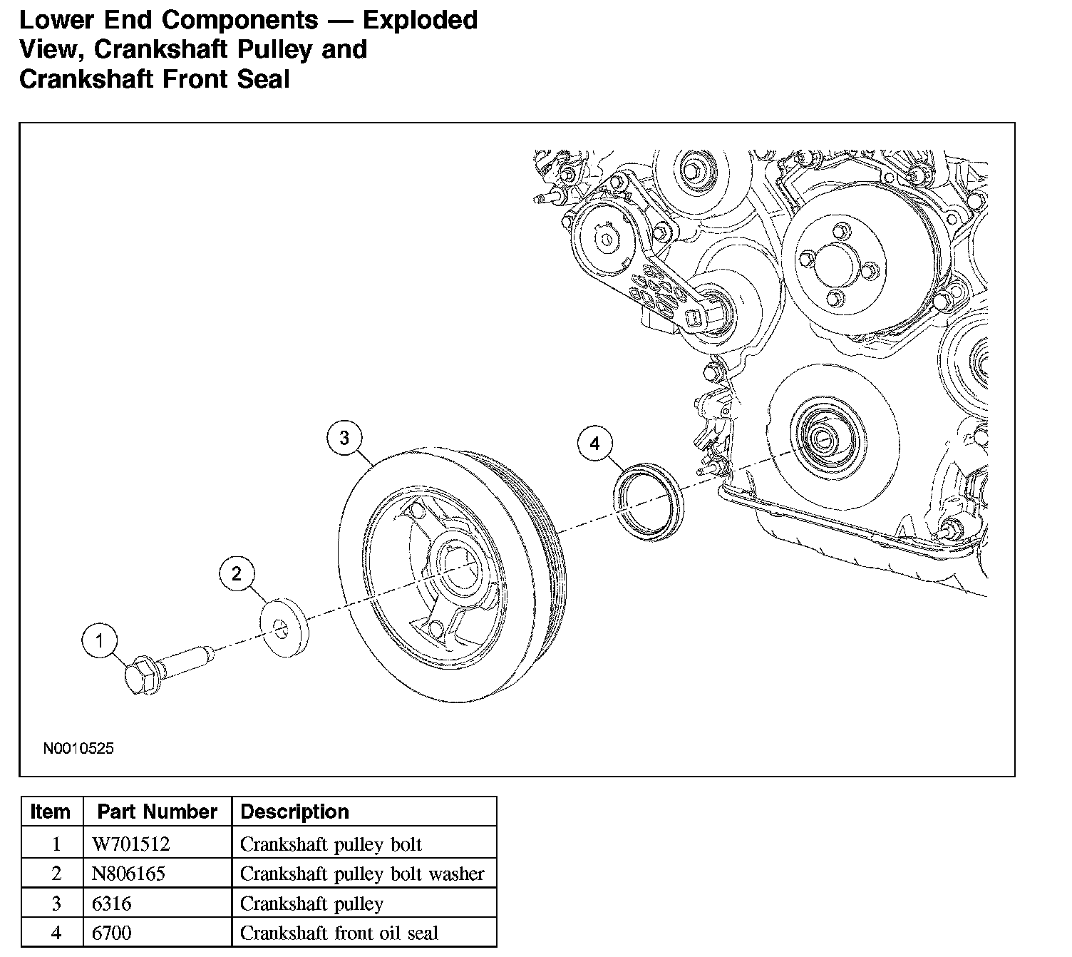 Lower End Components - Exploded View, Crankshaft Pulley and Crankshaft Front Seal: