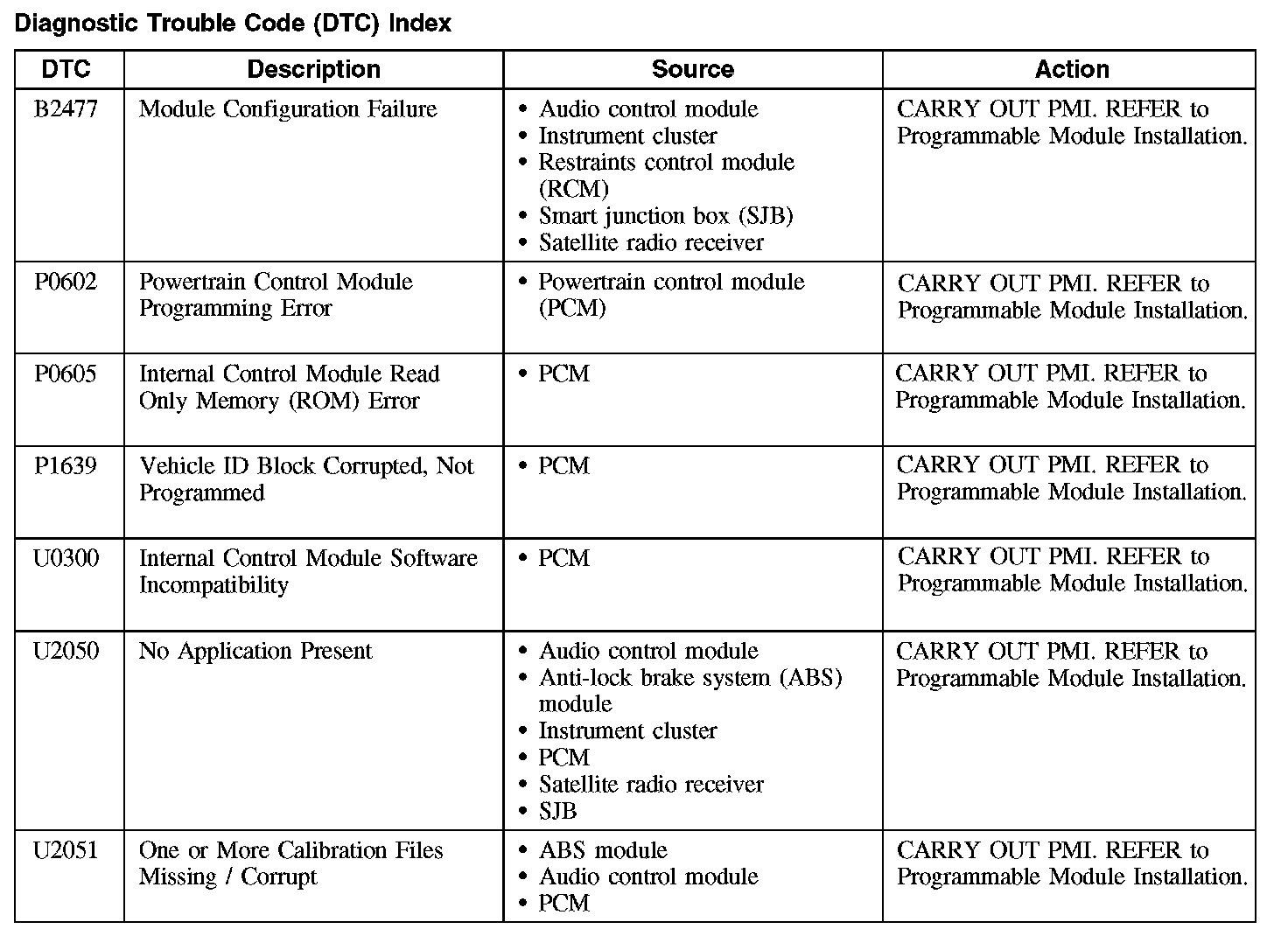 B2477 / P0602-P1639 / U0300-U2051: