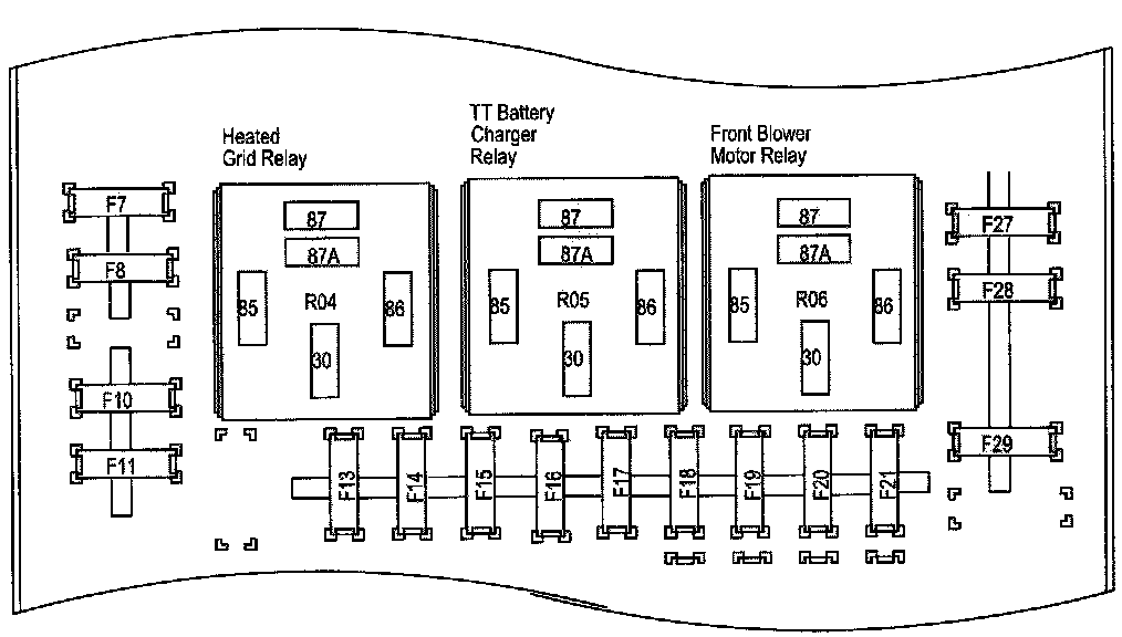 Fuse and Relay Information contains a view of the fuse/relay box in which fuses and relays are identified, numbered and named. Fuse and relay numbering and naming follow the indication of the fuse panel cover. In addition, for all removable relays, pin positions are added to illustrate proper orientation.
