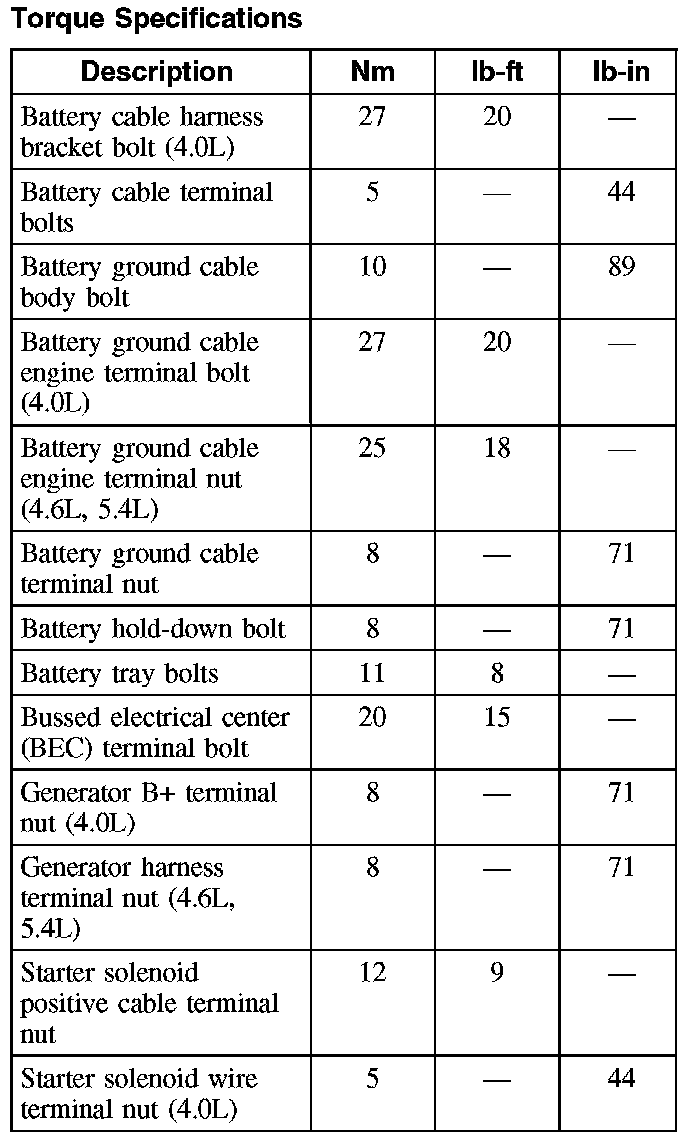 Torque Specifications: