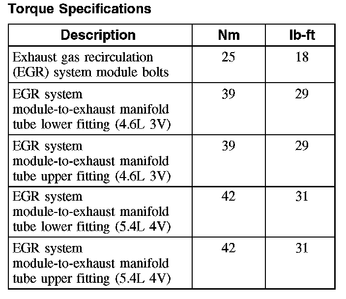 Torque Specifications: