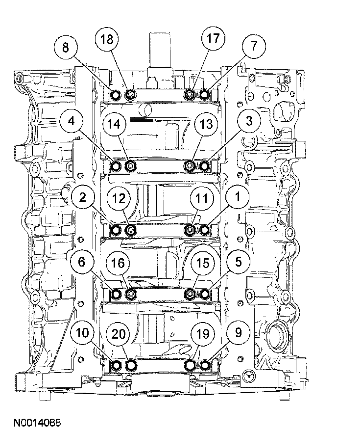 Stage 1: fasteners 1 through 20 10 Nm (89 inch lbs.)