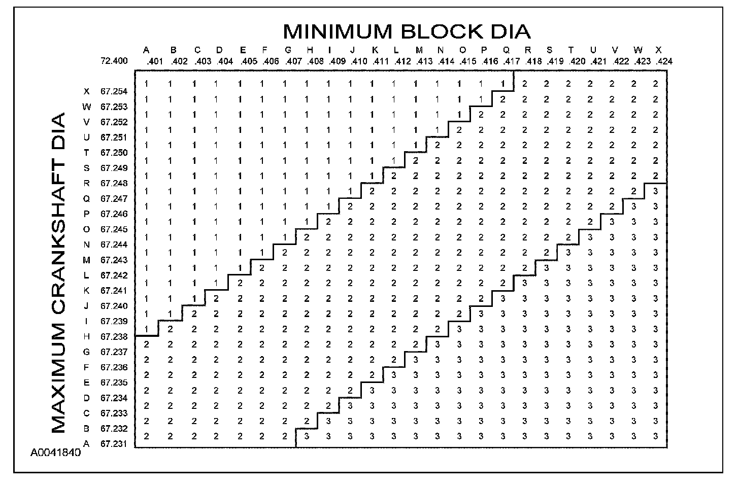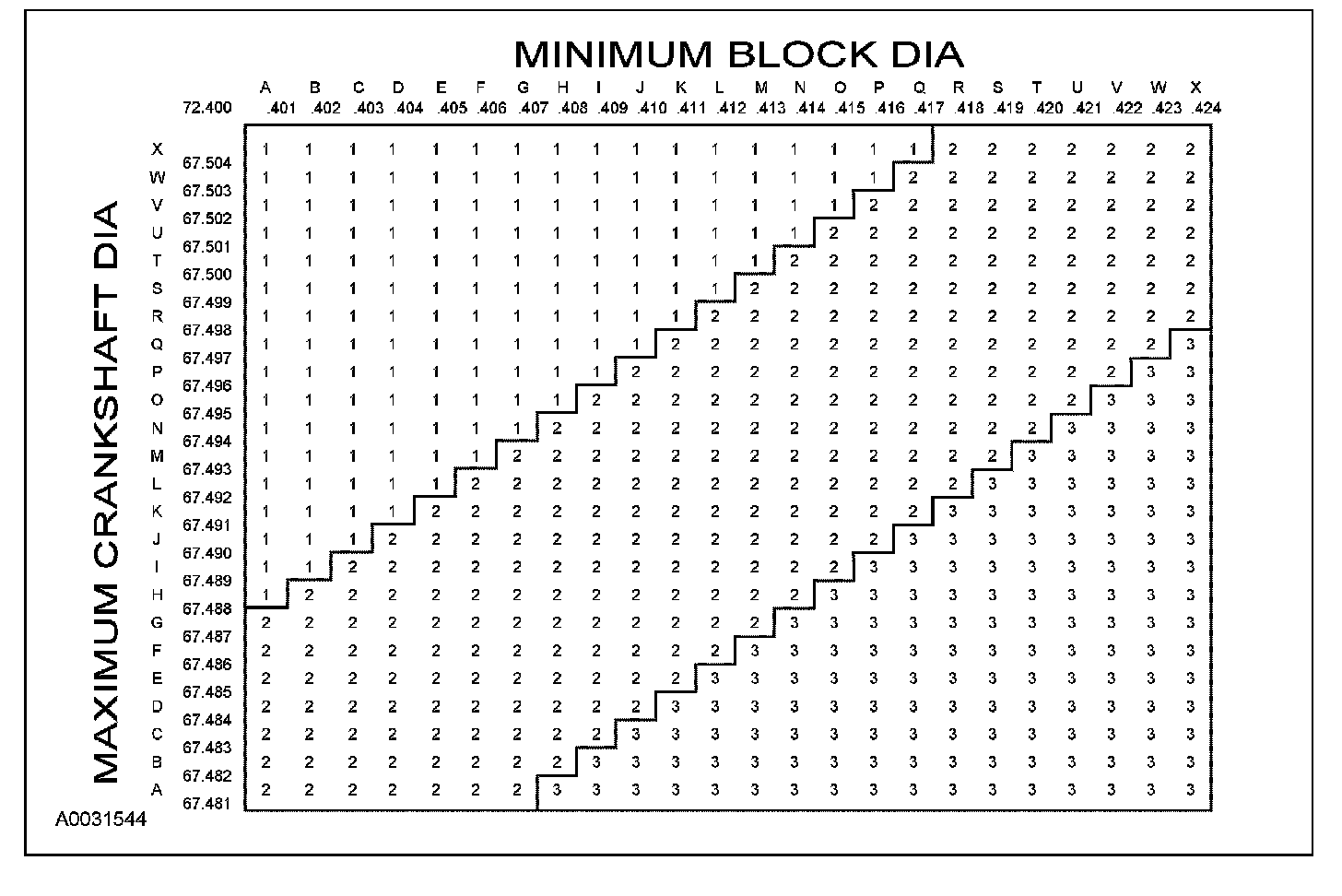 Main bearing journal diameter 67.481-67.505 mm (2.6567-2.6576 inch)