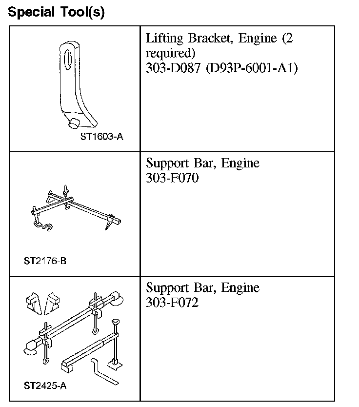 7. NOTE: The heavy duty Engine Support Bar (303-F072) must be used with the draw screws from the light duty Engine Support Bar (303-F070). This will provide enough clearance between the supercharger (SC311) and the Engine Support Bar (303-F072) and enough clearance between the draw screw and the vehicle hood.