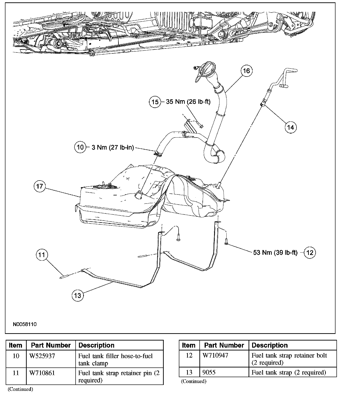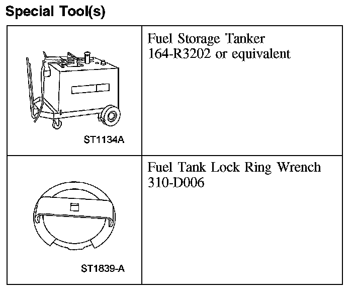 5. CAUTION: The fuel pump (FP) module and fuel level sensor will be below the fuel level in the tank when the tank is full. Make sure to drain 1/8 of the fuel capacity through the filler pipe prior to removing the pumps or fuel spillage will occur.