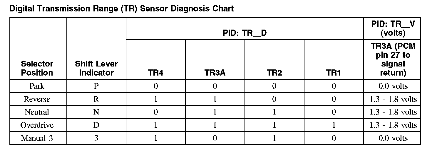 Digital Transmission Range (TR) Sensor Diagnosis ChartDigital Transmission Range (TR) Sensor Diagnosis Chart (Part 1):