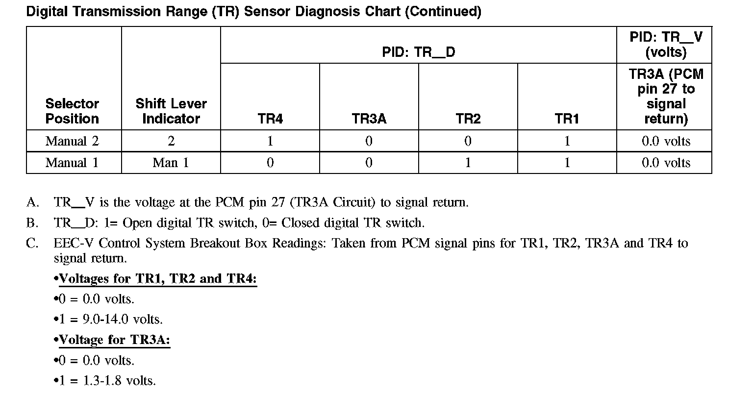 Digital Transmission Range (TR) Sensor Diagnosis Chart (Part 2):