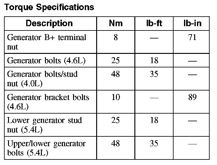Torque Specifications: