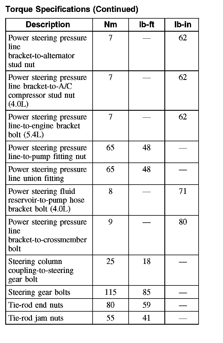 Torque Specifications (Part 1):