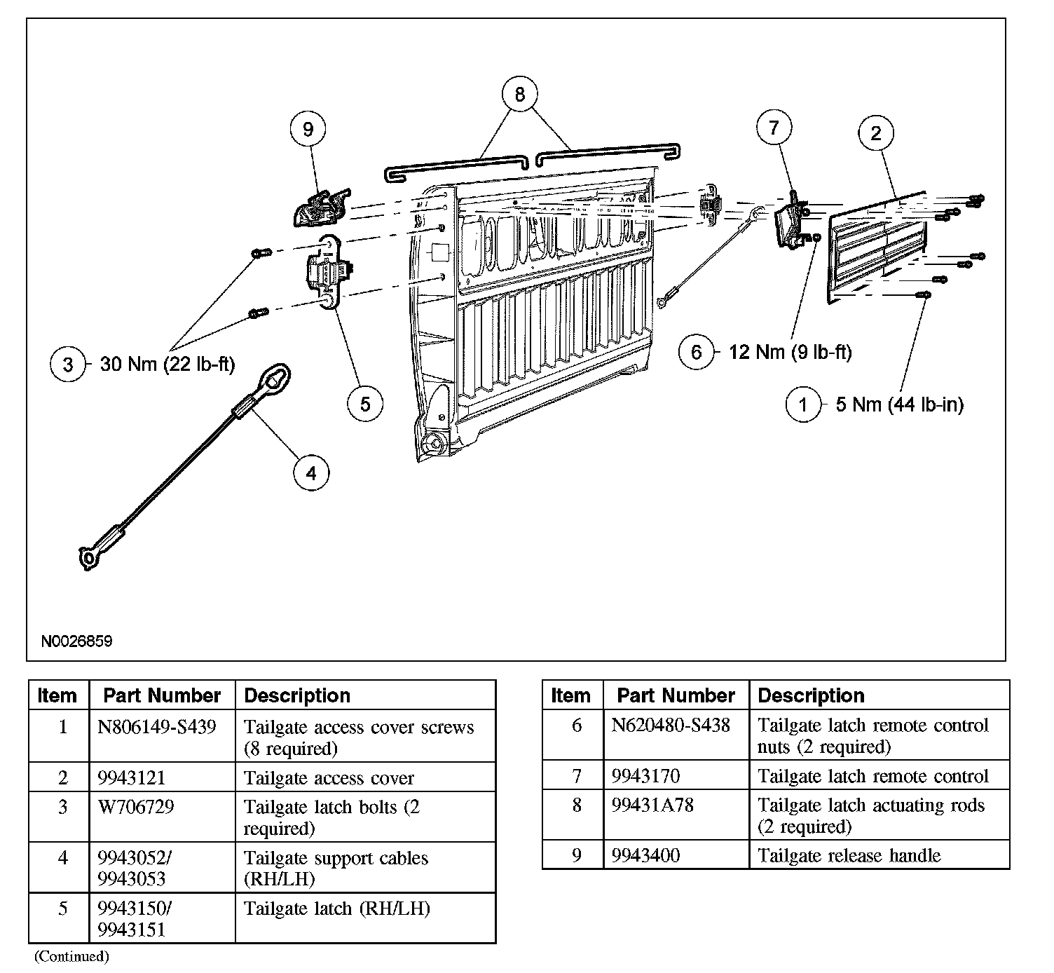 TAILGATE HANDLE, LOCK AND LATCHES - EXPLODED VIEW