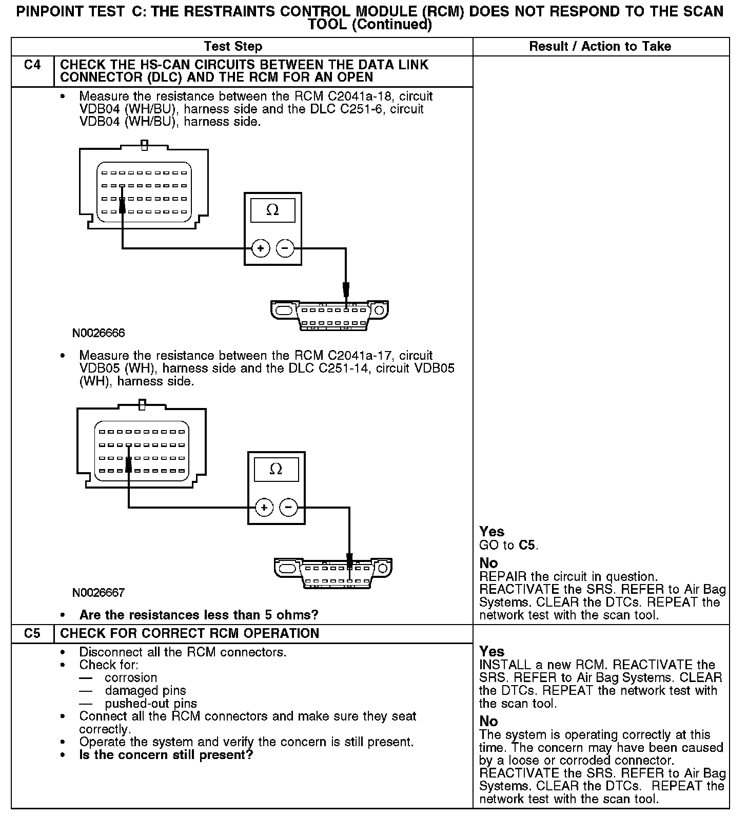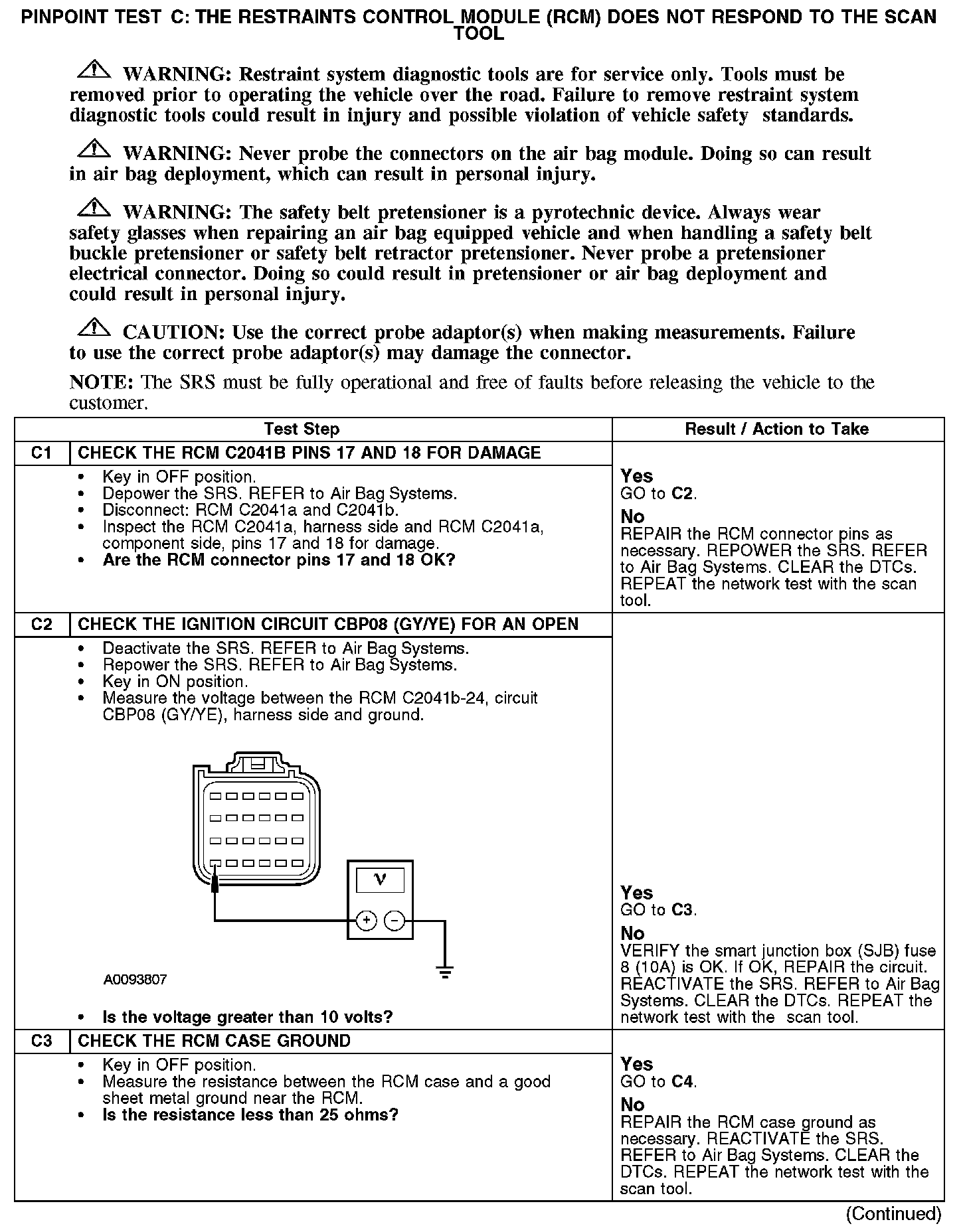 PINPOINT TEST C: THE RESTRAINTS CONTROL MODULE (RCM) DOES NOT RESPOND TO THE SCAN TOOLC1-C3: