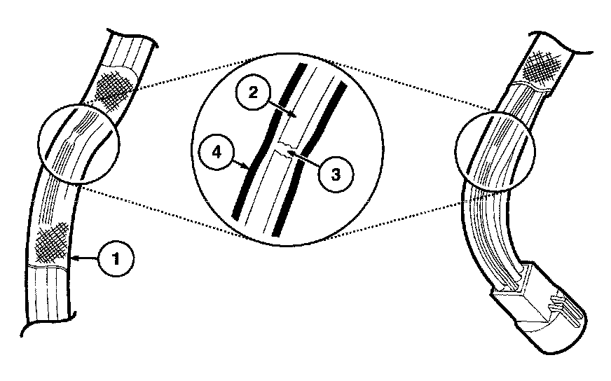 The illustrations are known examples of wiring harness, splices and connectors that will create intermittent electrical concerns. The concerns are hidden and can only be discovered by a physical evaluation as shown in each illustration.